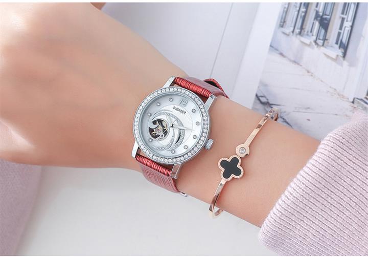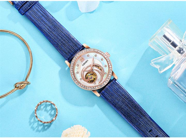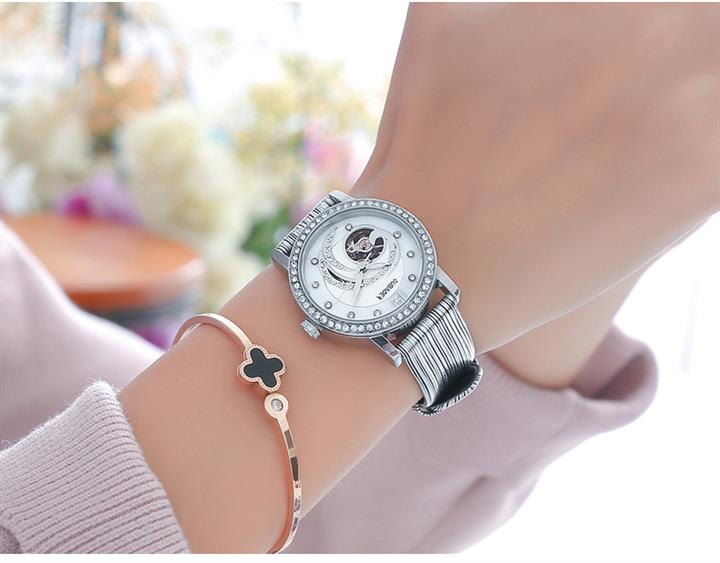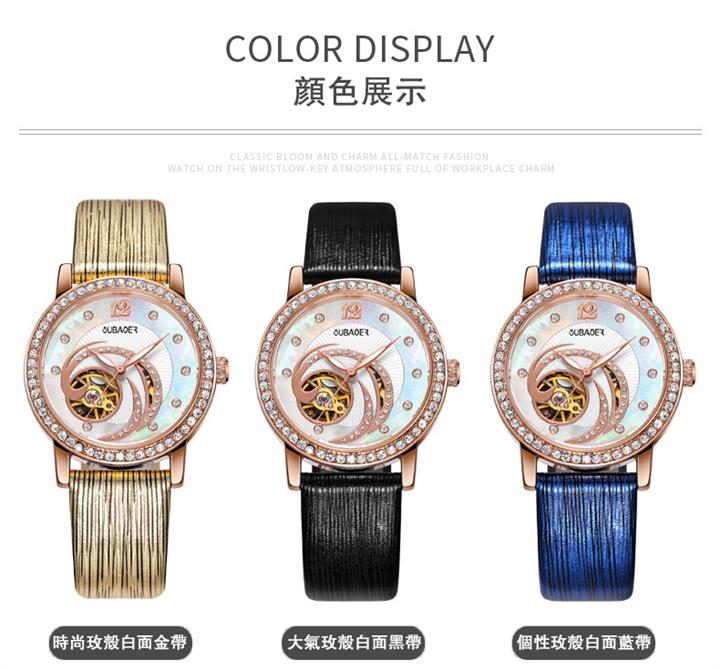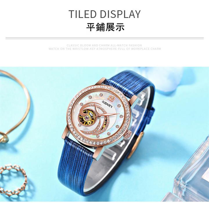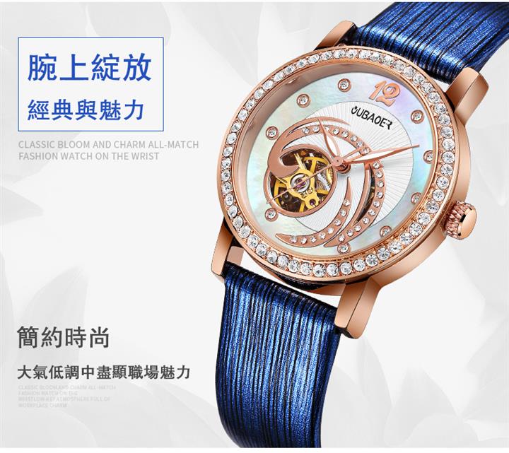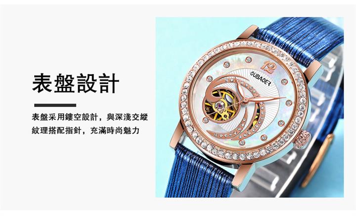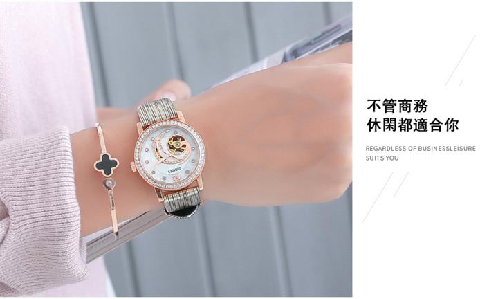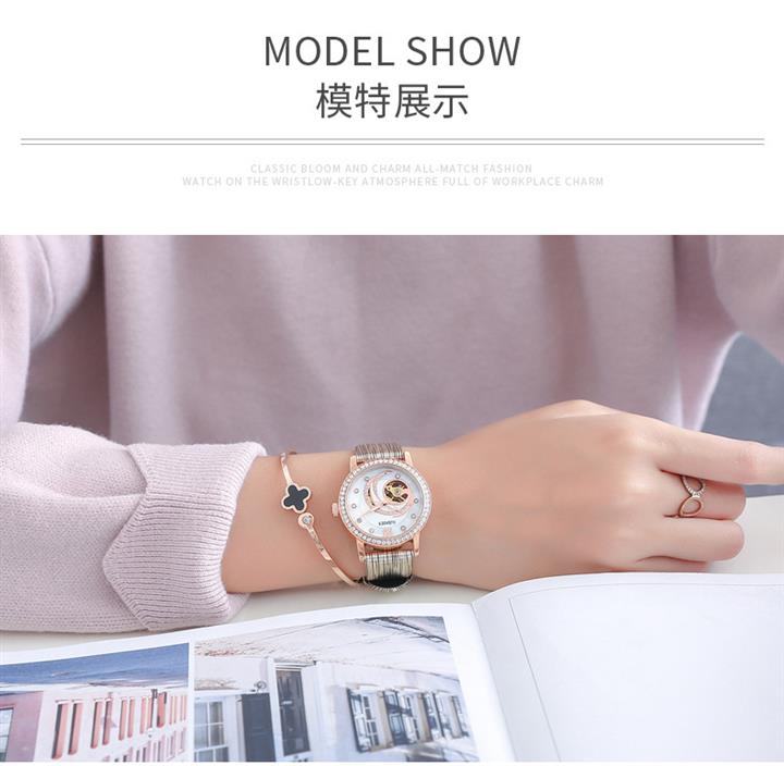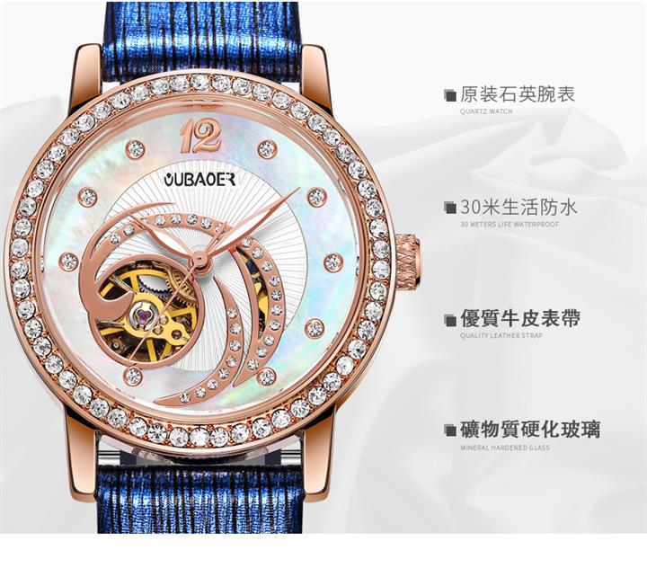 多功能雙機芯鑲鑽錶盤女款玫瑰矽膠錶帶夜光手錶 Wat1864