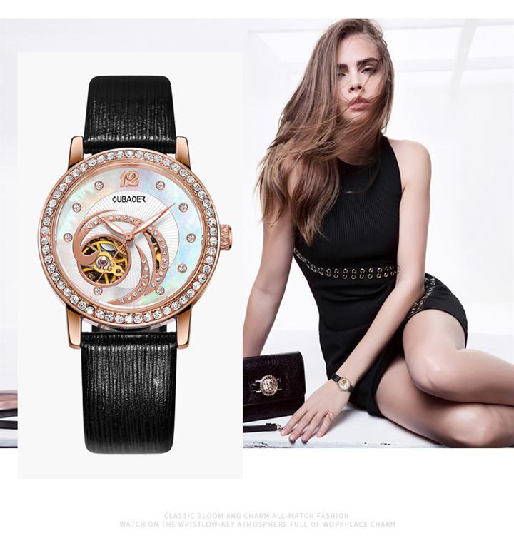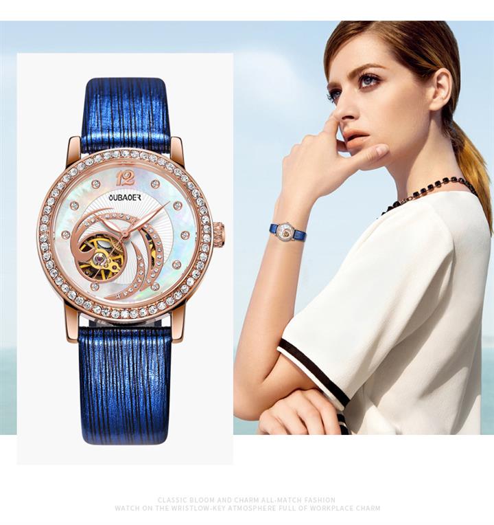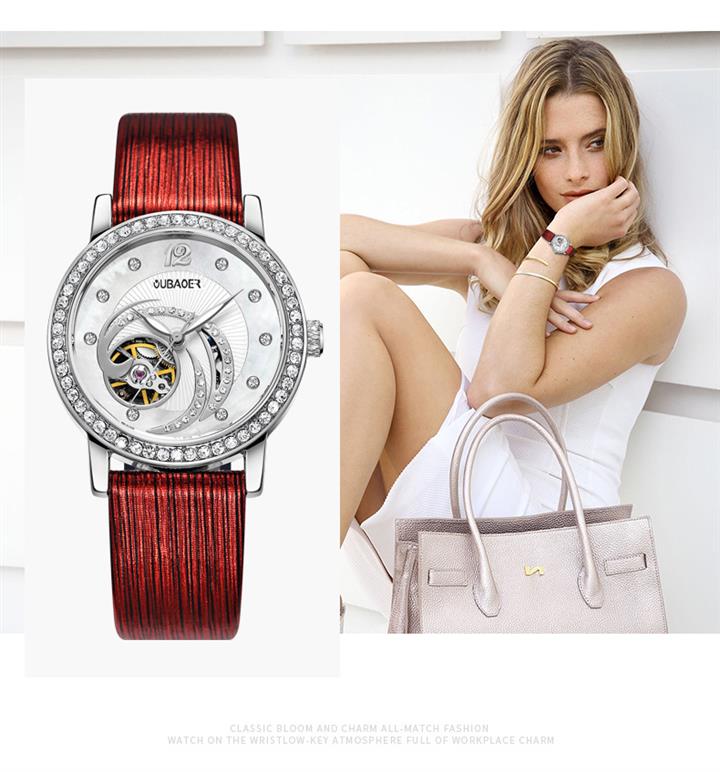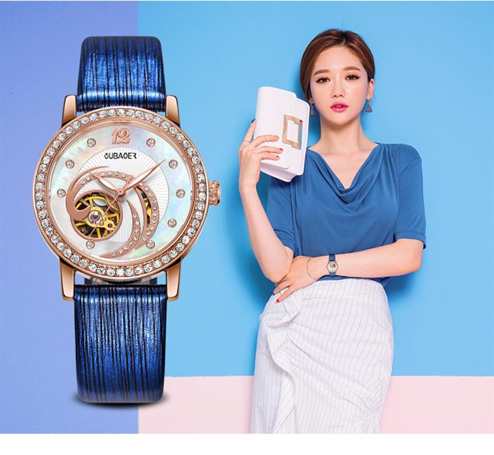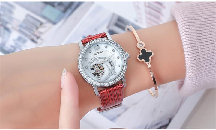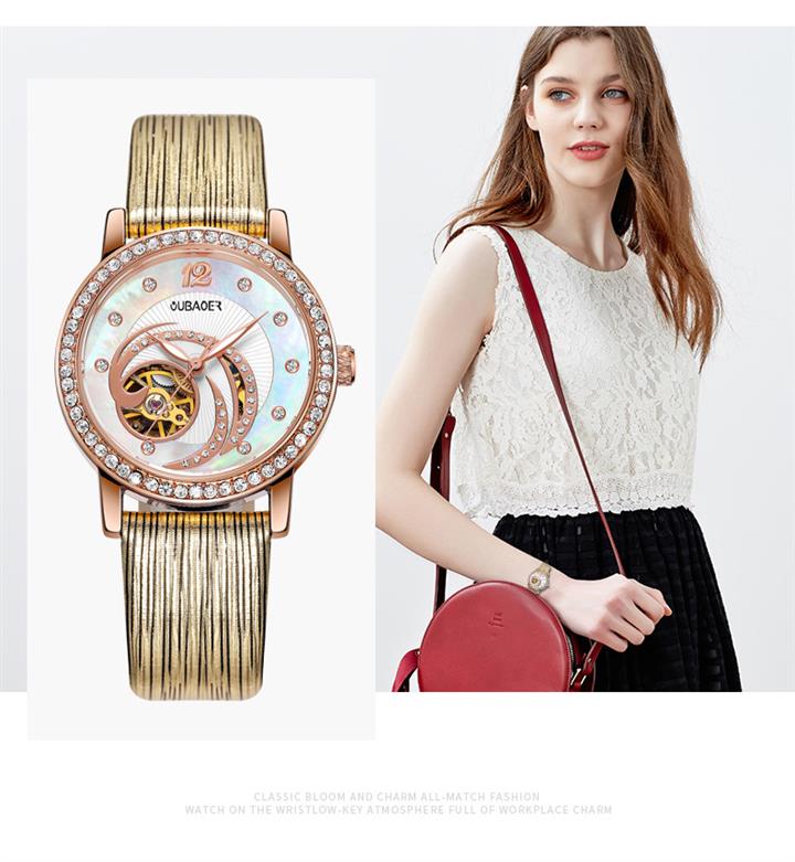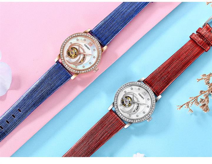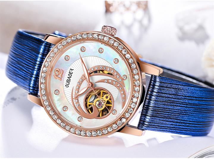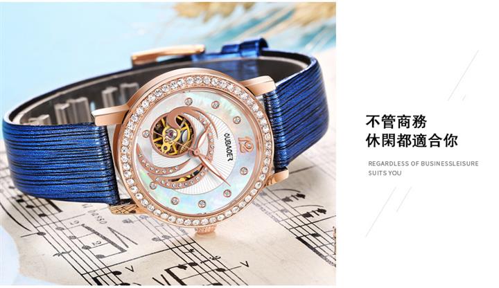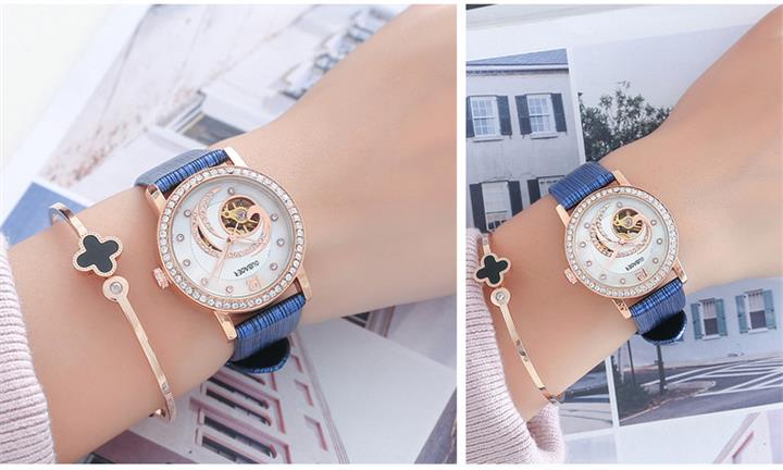 多功能雙機芯鑲鑽錶盤女款玫瑰矽膠錶帶夜光手錶 Wat1864
