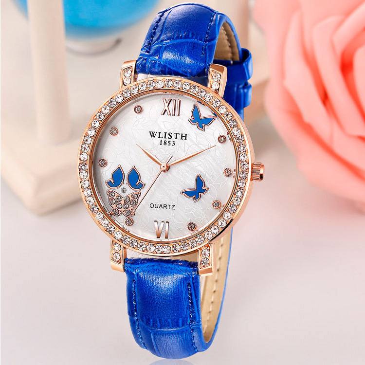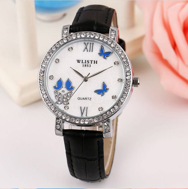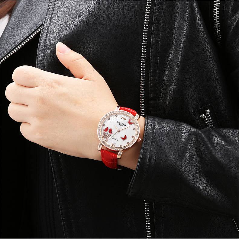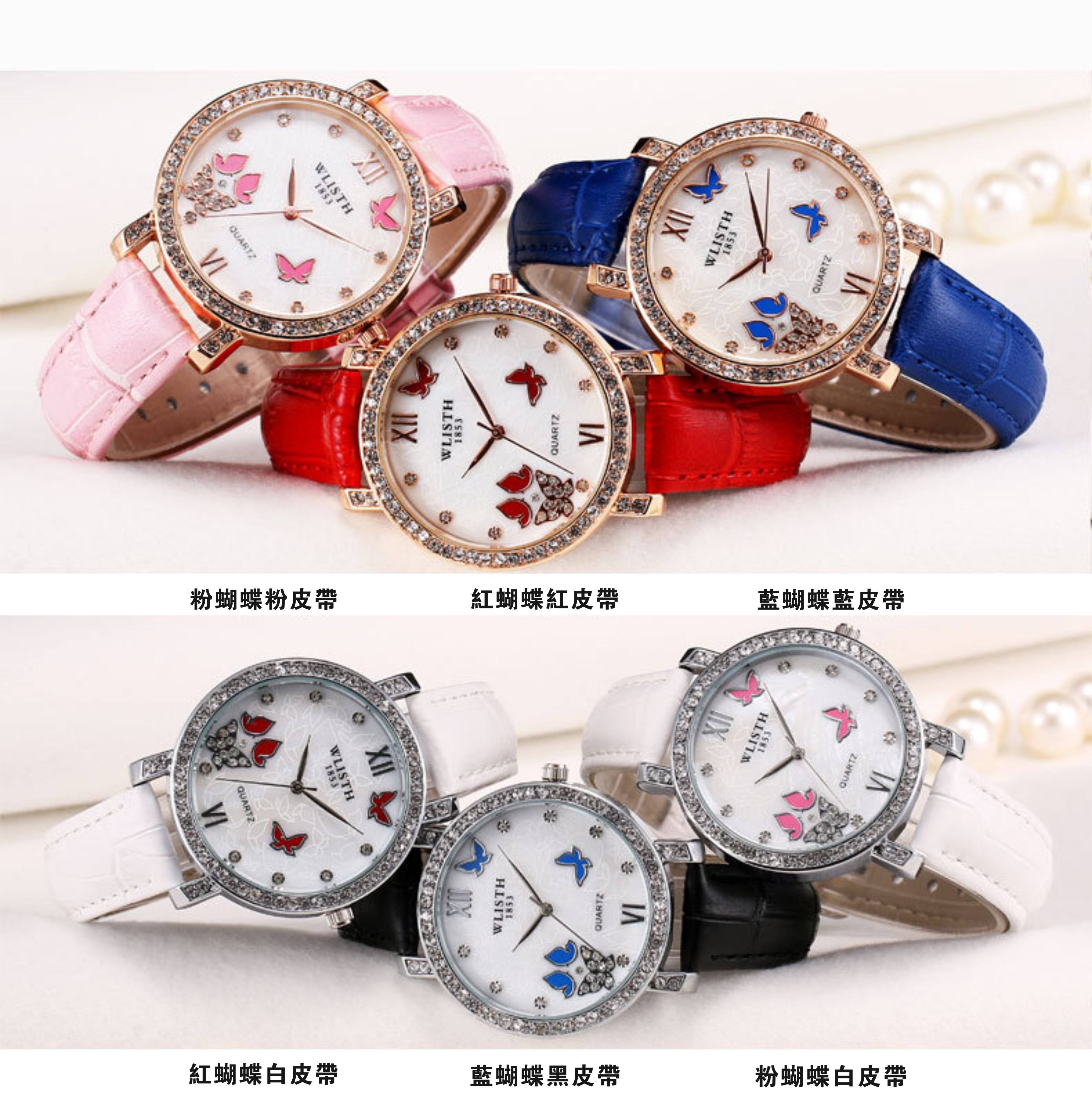 耐用鑲鑽女表皮帶帶手錶女時裝表 女士潮流 時尚水鑽Wat69