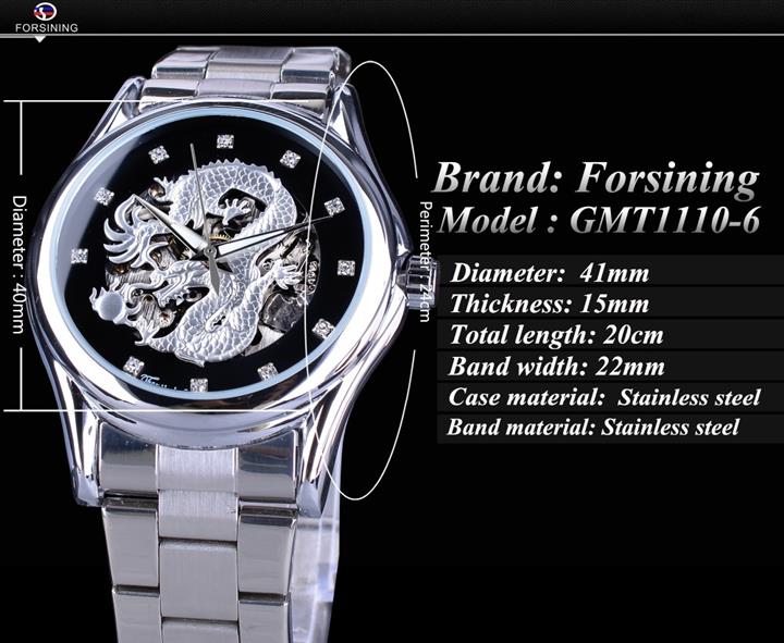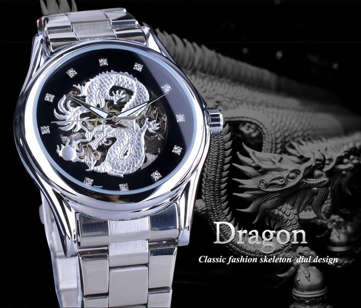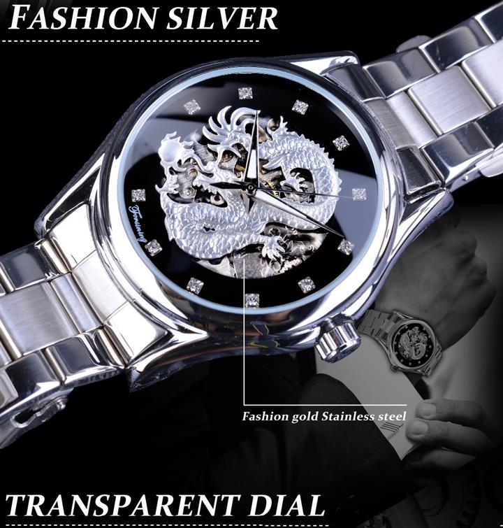FORSINING新款男士全自動機械休閒鏤空龍紋防水機芯手錶wat1144