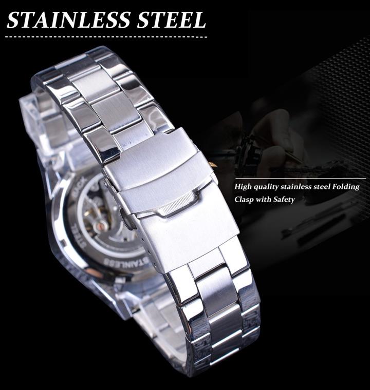 FORSINING新款夜光防水精鋼帶全自動男士多功能鏤空機械錶wat1146