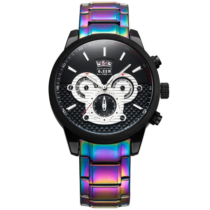 安哥拉寶斯炫彩全鋼錶帶六針石英錶多功能個性運動男士手錶wat1139