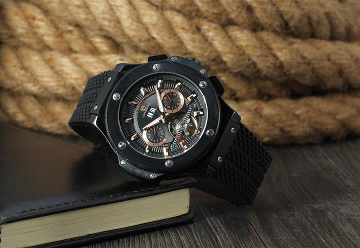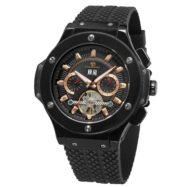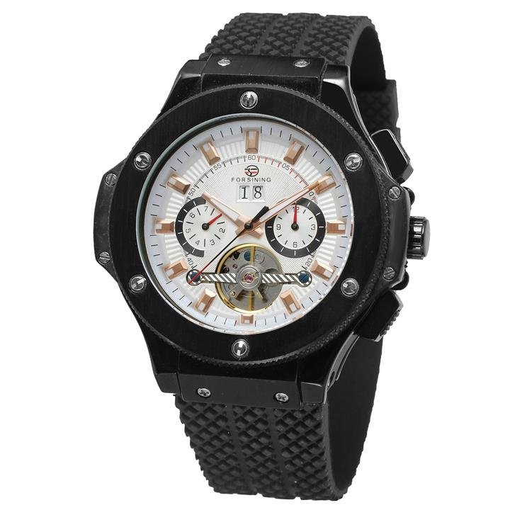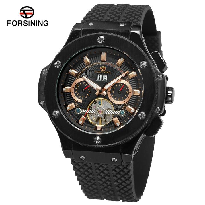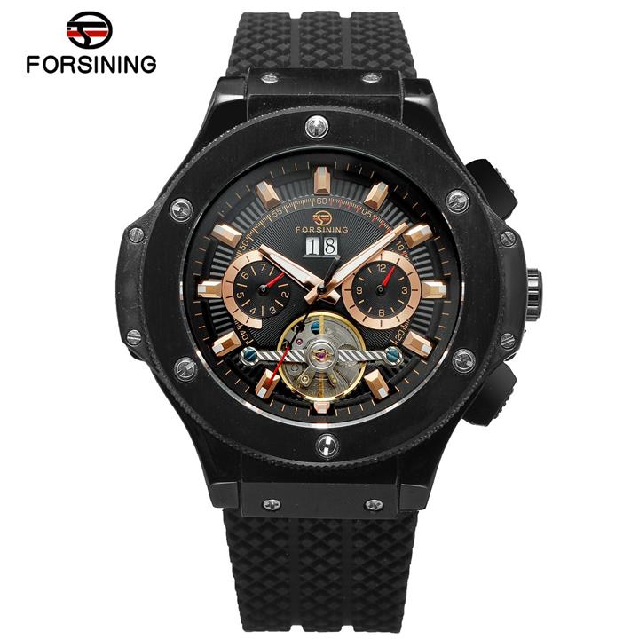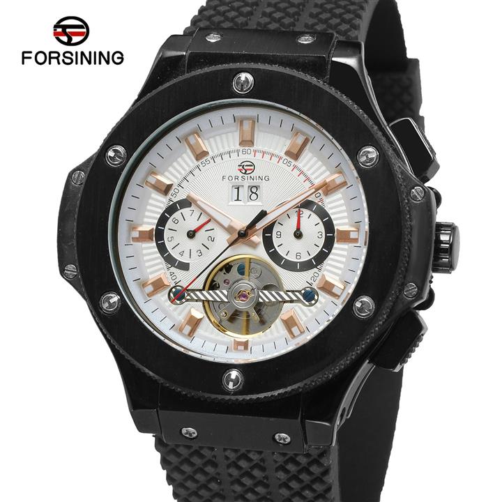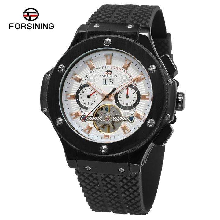 富西尼FORSINING日曆多功能飛輪男士自動機械錶膠帶男錶wat1131