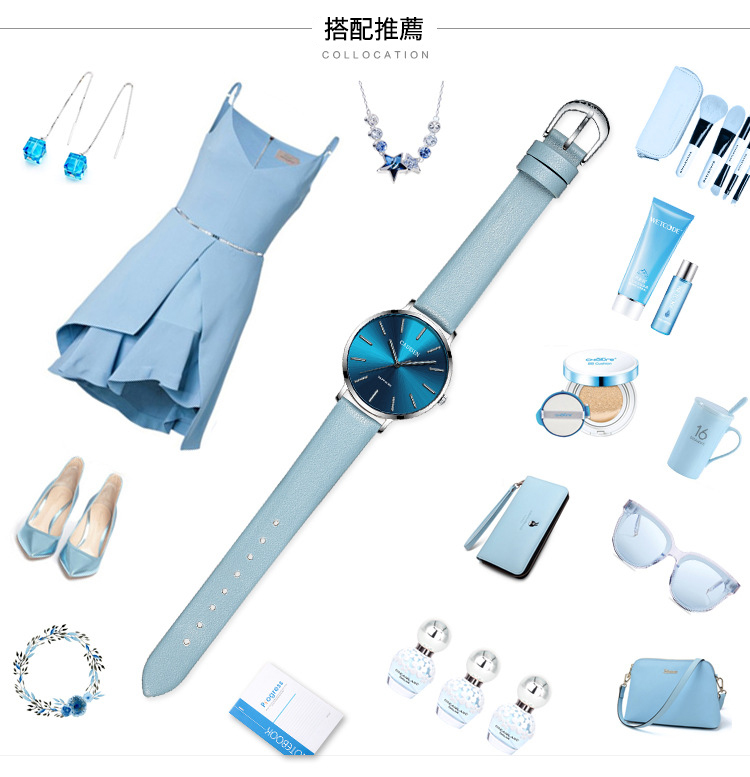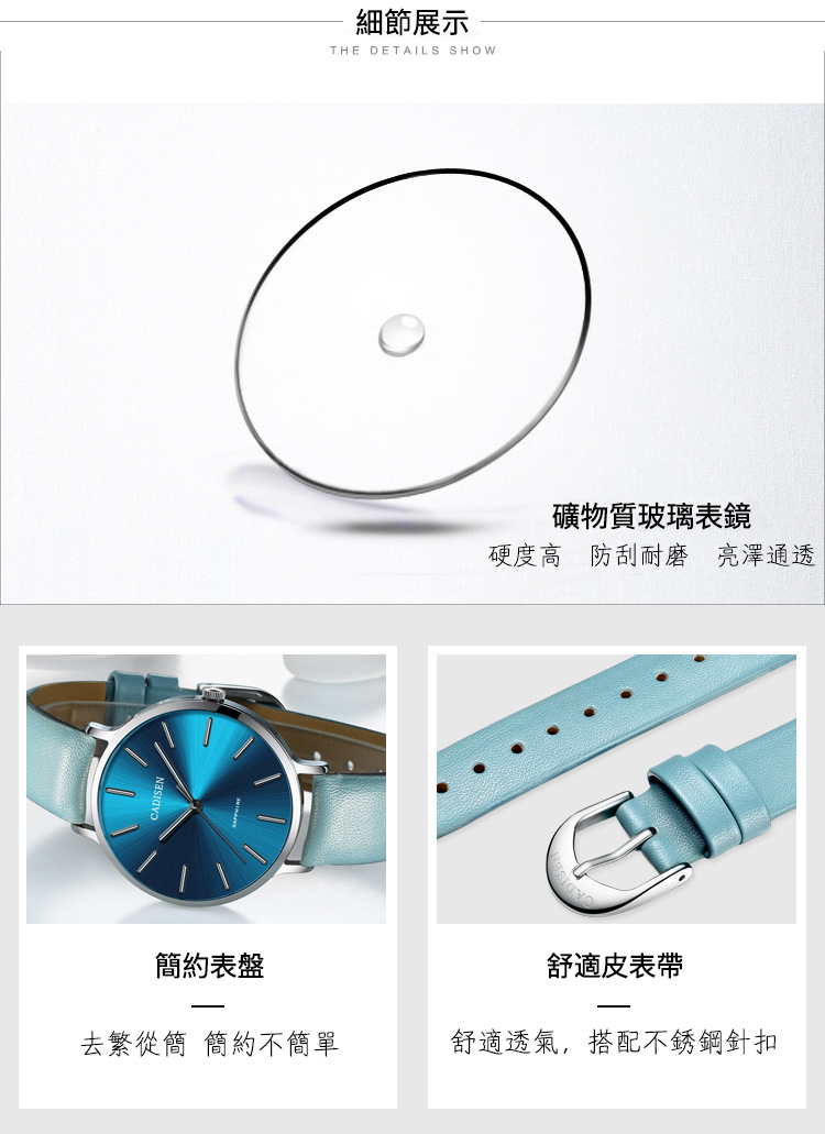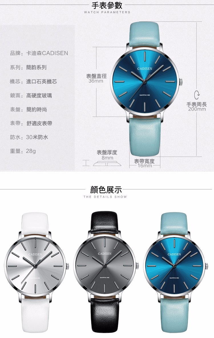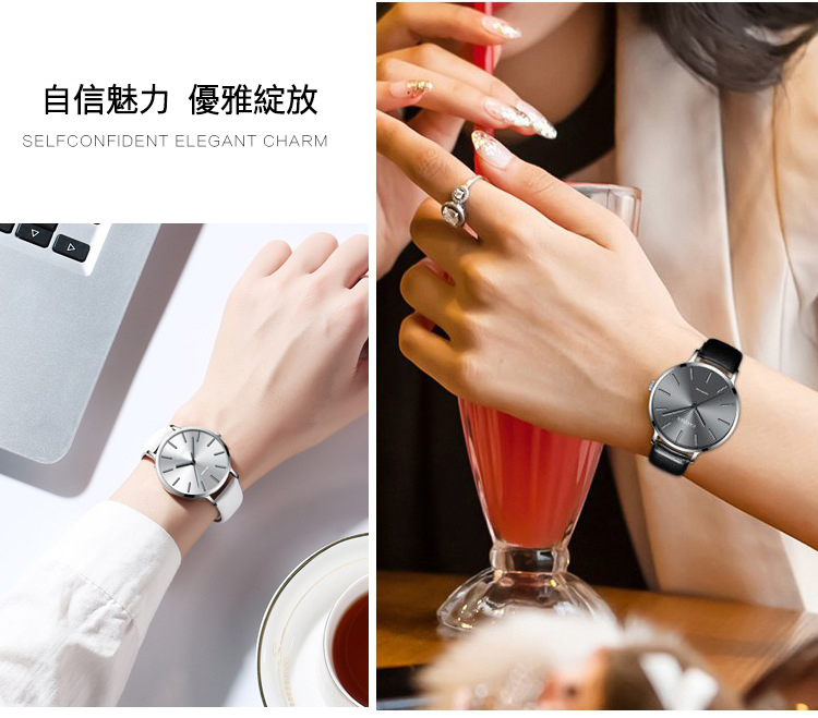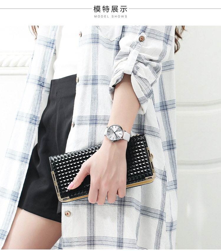 優雅時尚貝殼面真皮錶帶實心鋼錶Wat43