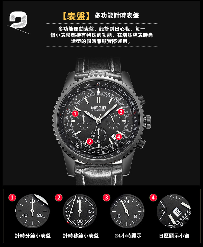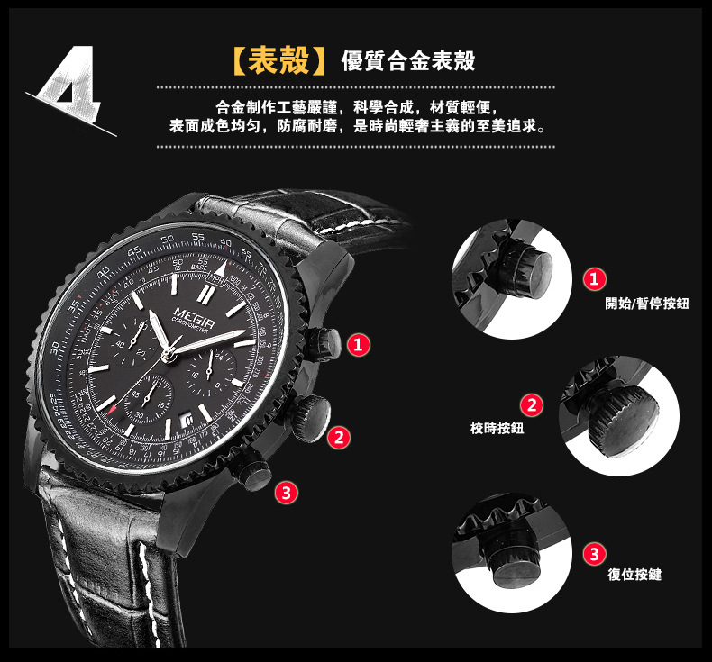 美格尔MEGIR男士多功能防水運動手錶wat136