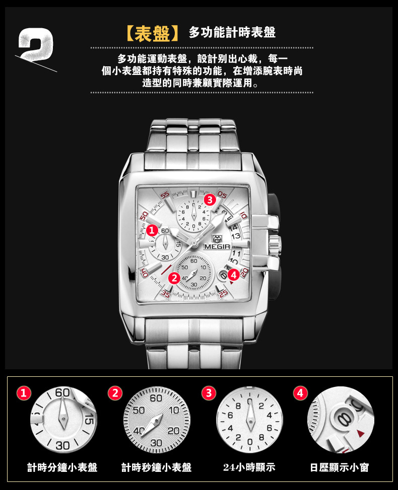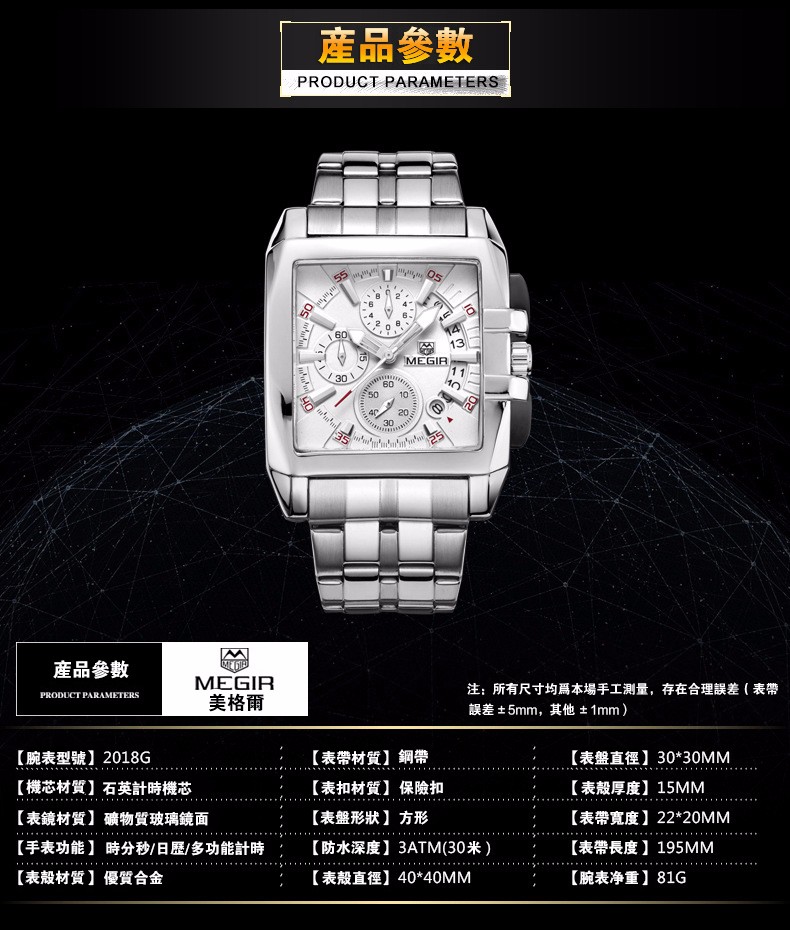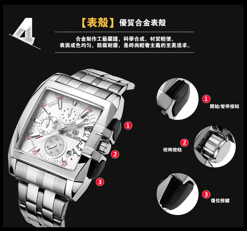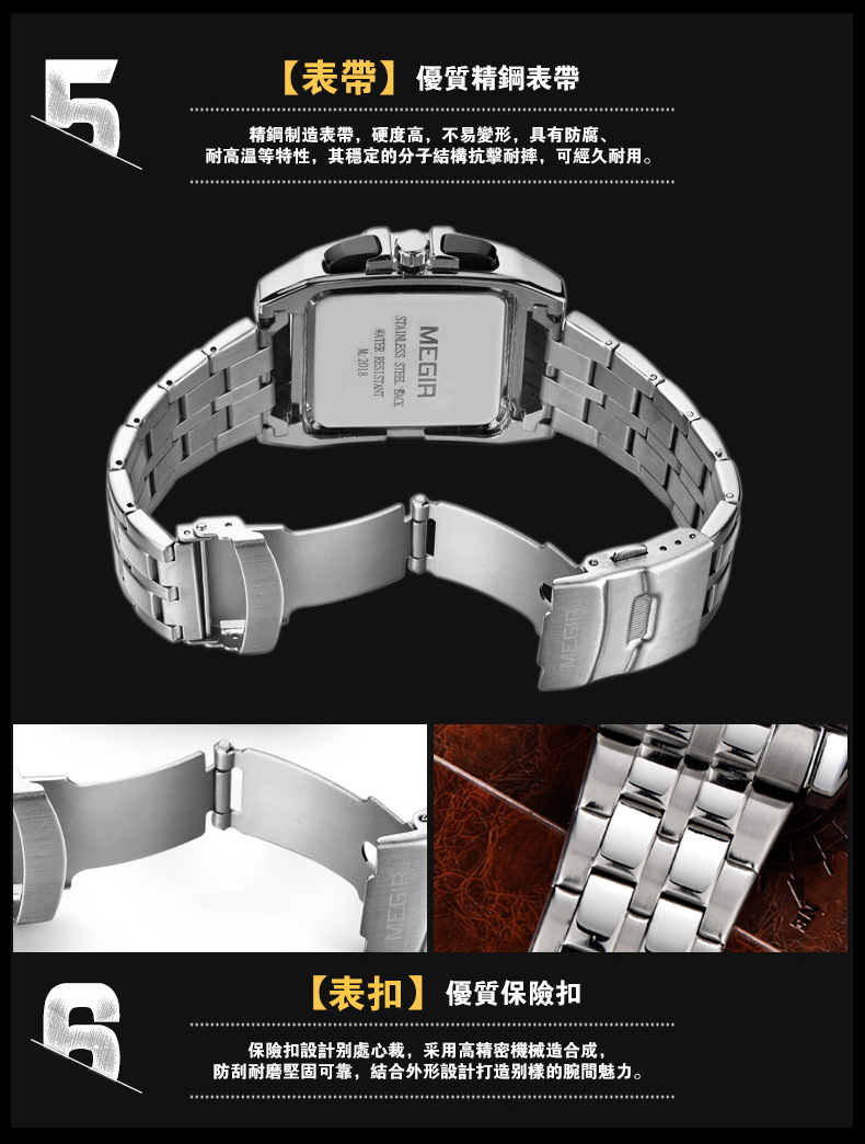 美格尔MEGIR鋼帶男士戶外運動手錶wat137