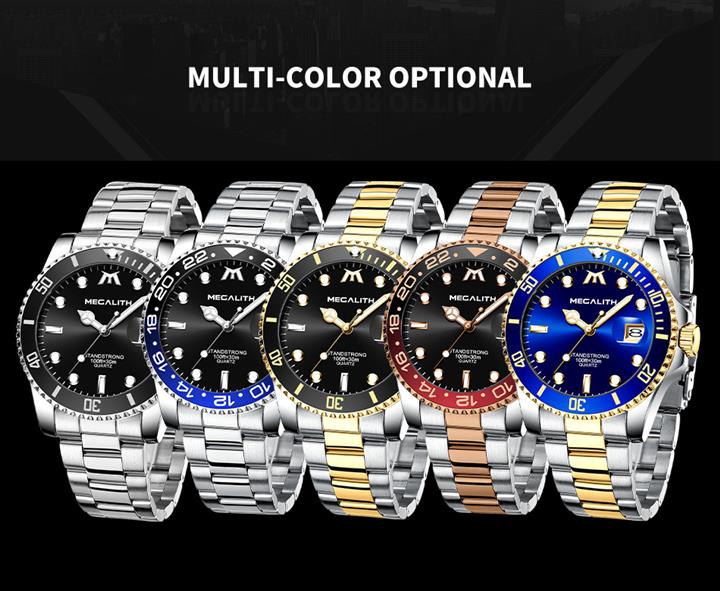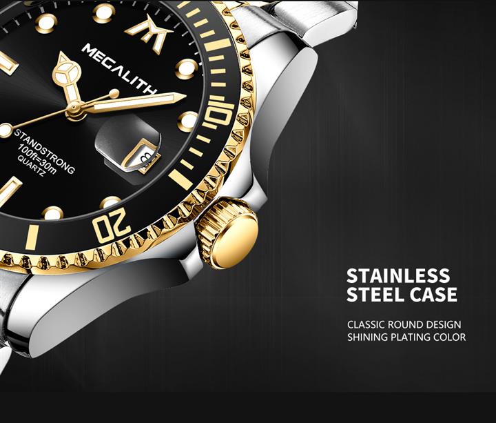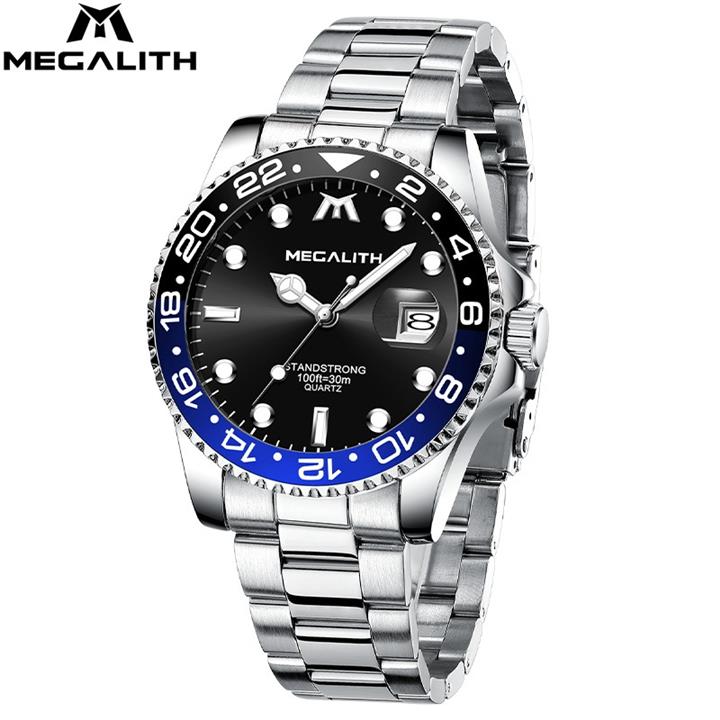 MEGALITH 時尚潮流不銹鋼腕表防水三針夜光指針男士石英手錶 Wat1867