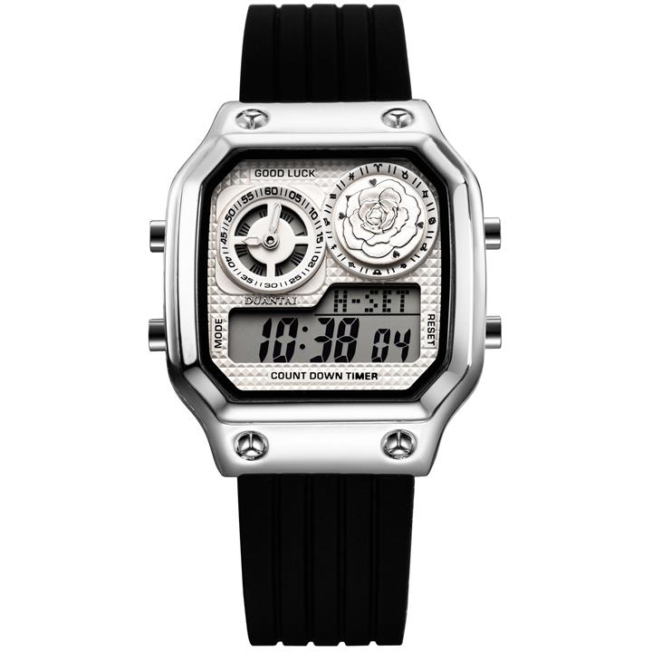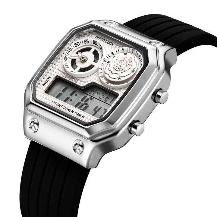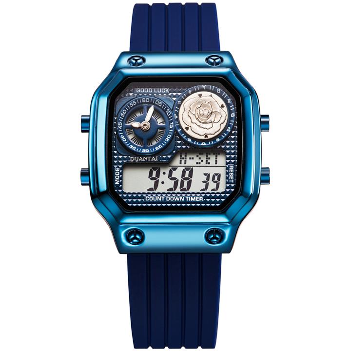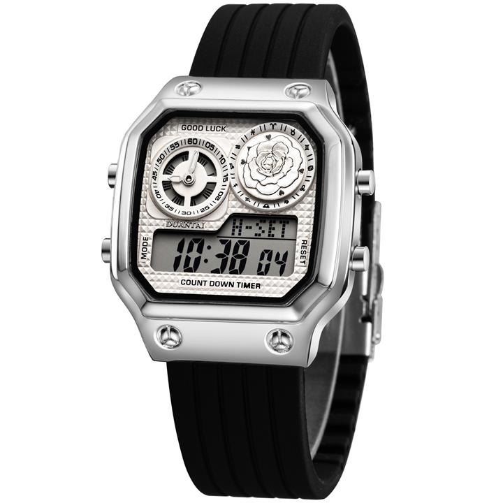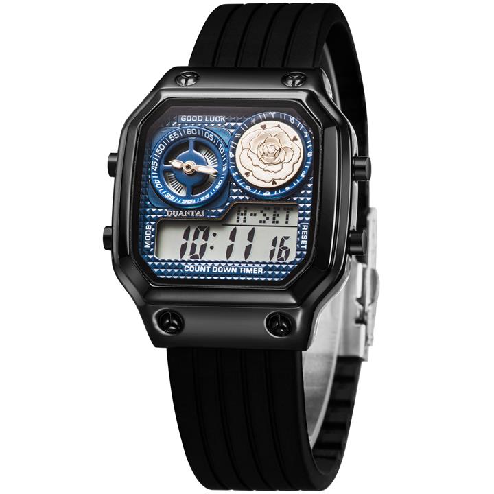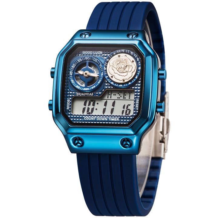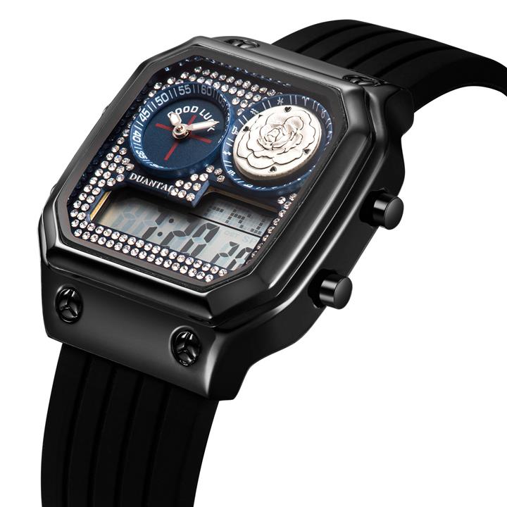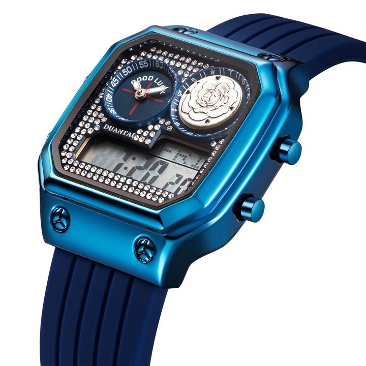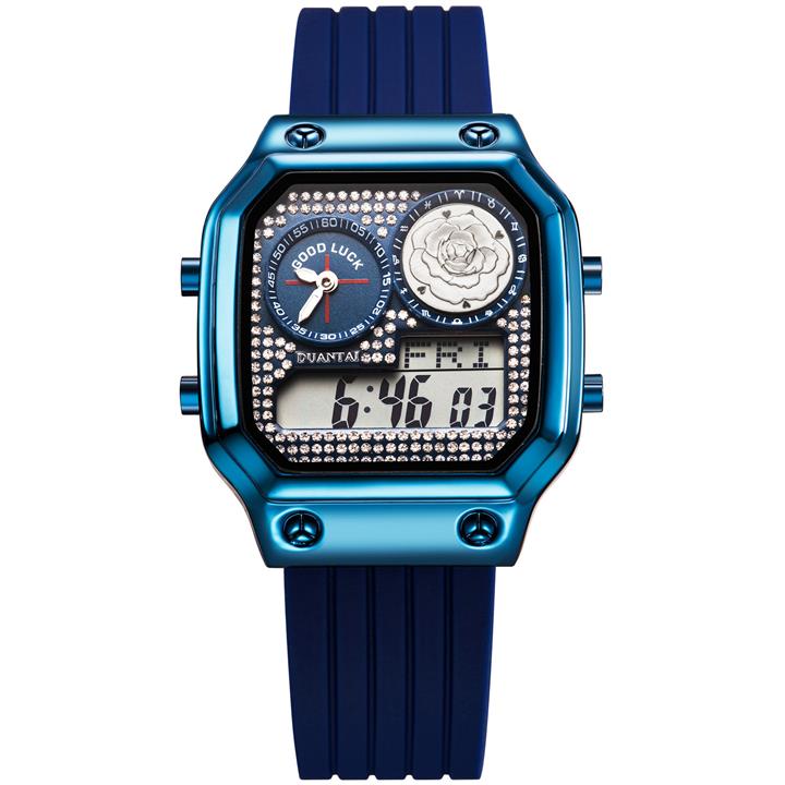 多功能雙機芯鑲鑽錶盤女款玫瑰矽膠錶帶夜光手錶 Wat1864