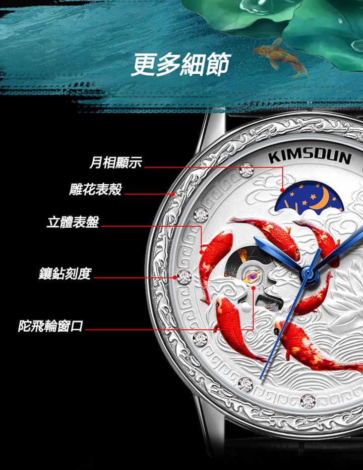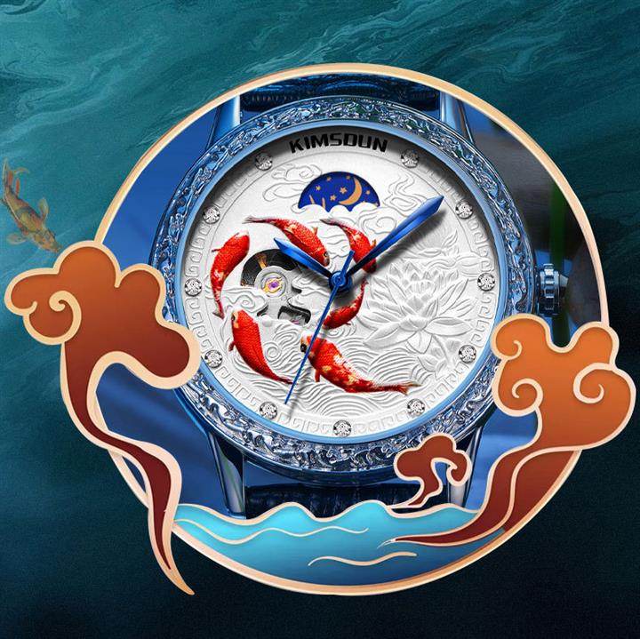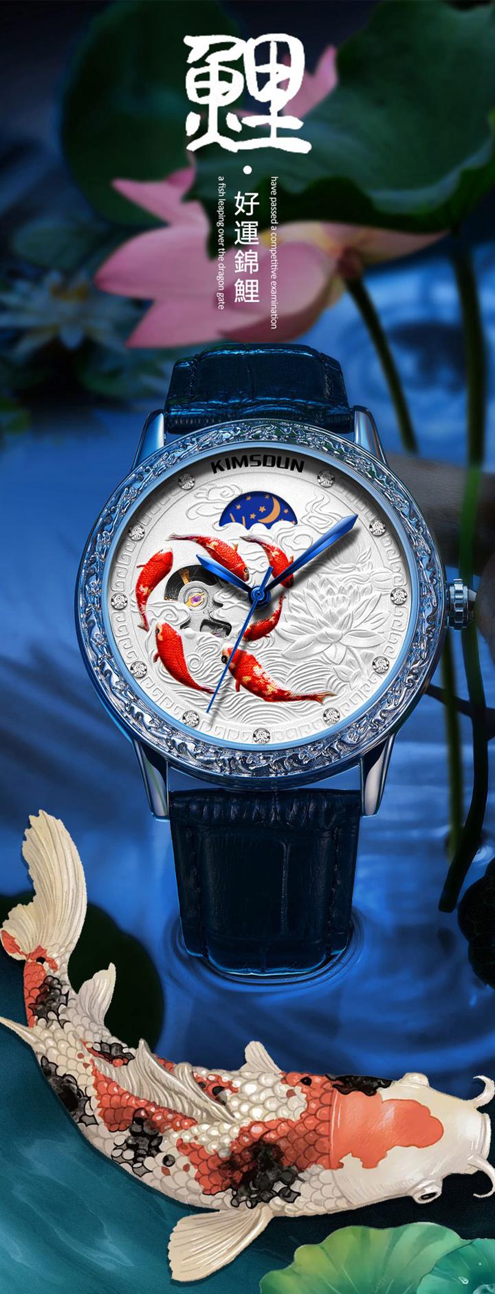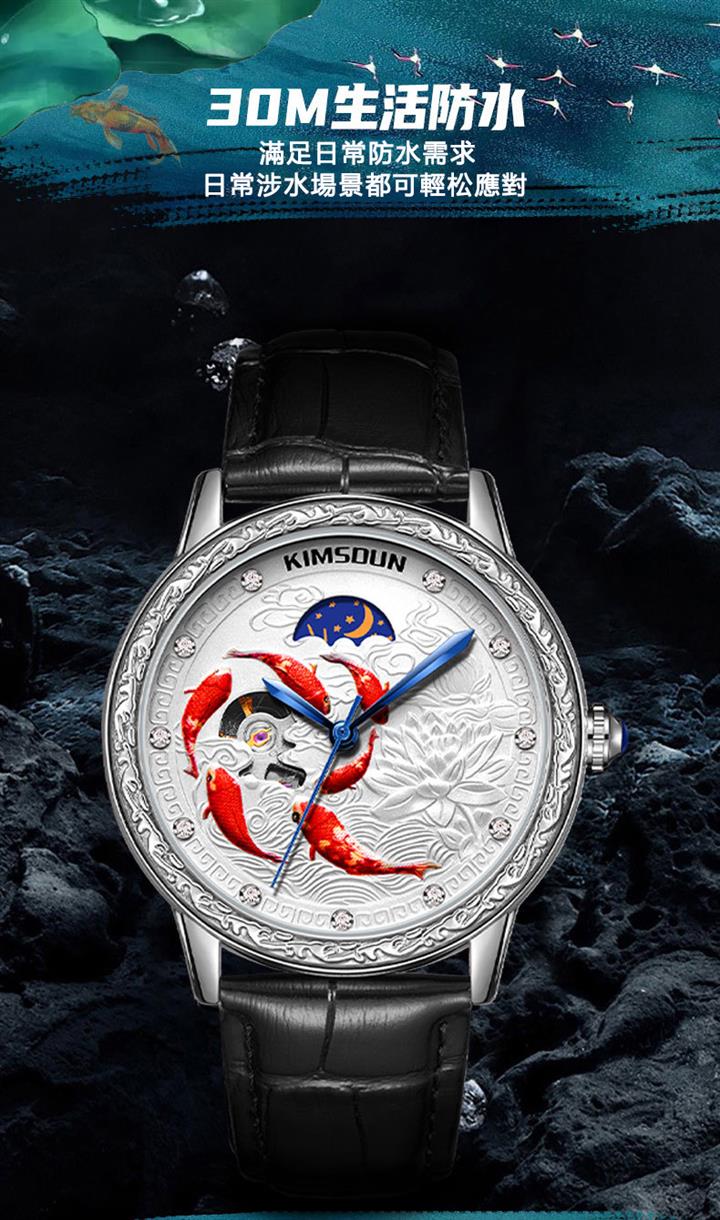 3D浮雕錦鯉鏤空全自動機械表 Wat1859