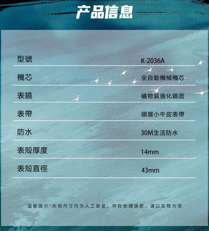 全自動機械多功能橡膠帶大號錶 wat1850