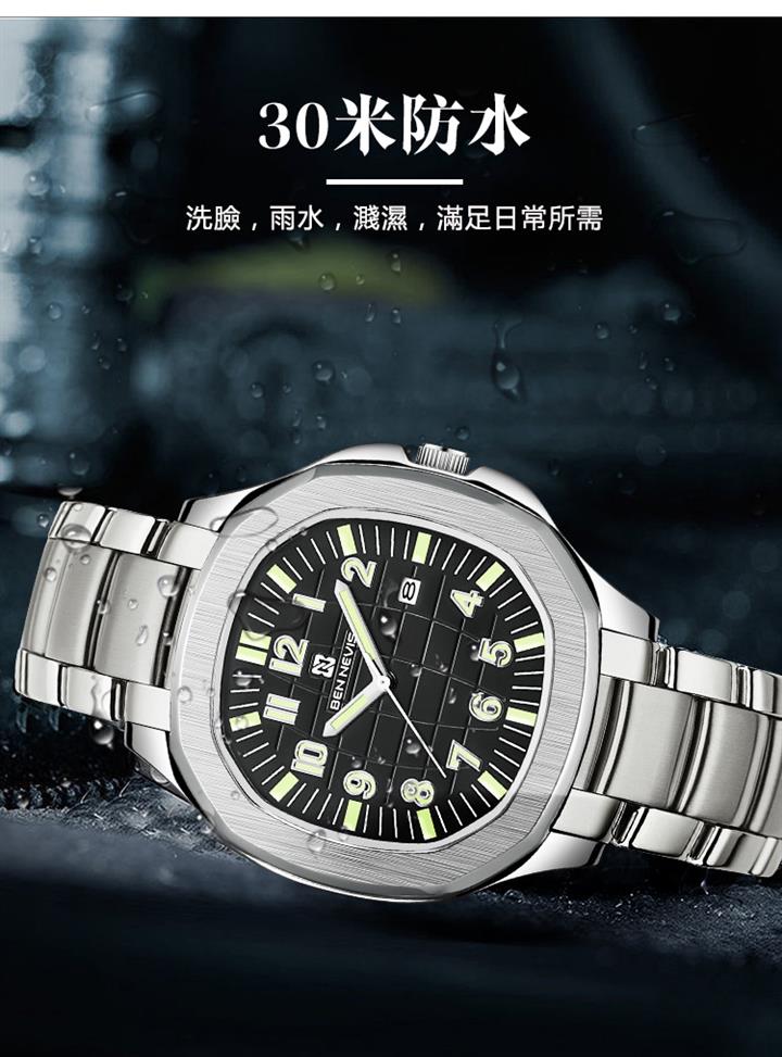 爆款鋼帶男士商務石英表Wat2184