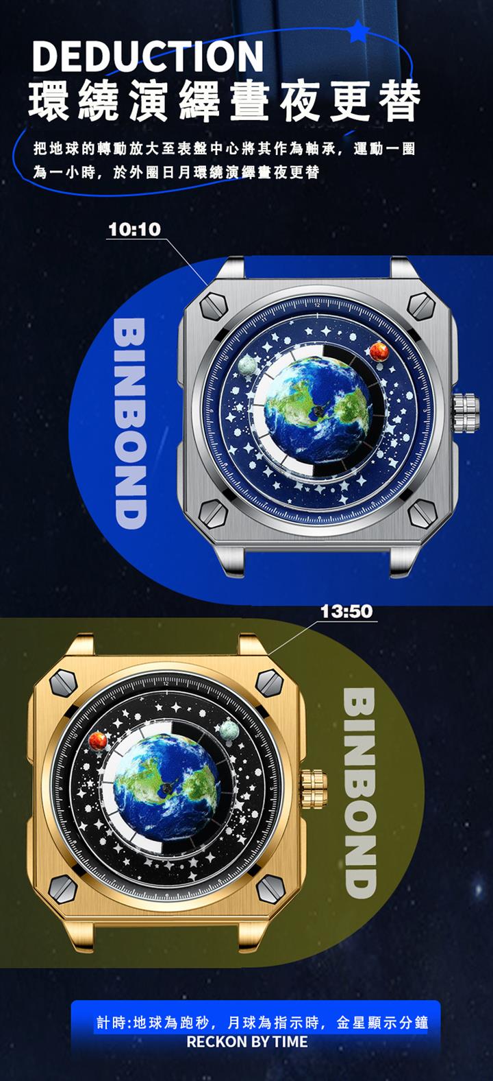 安哥拉寶斯炫彩全鋼錶帶六針石英錶多功能個性運動男士手錶wat1139