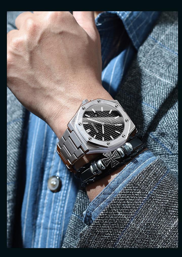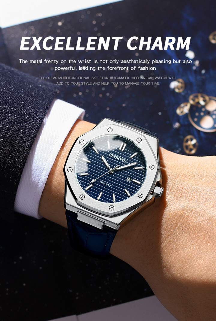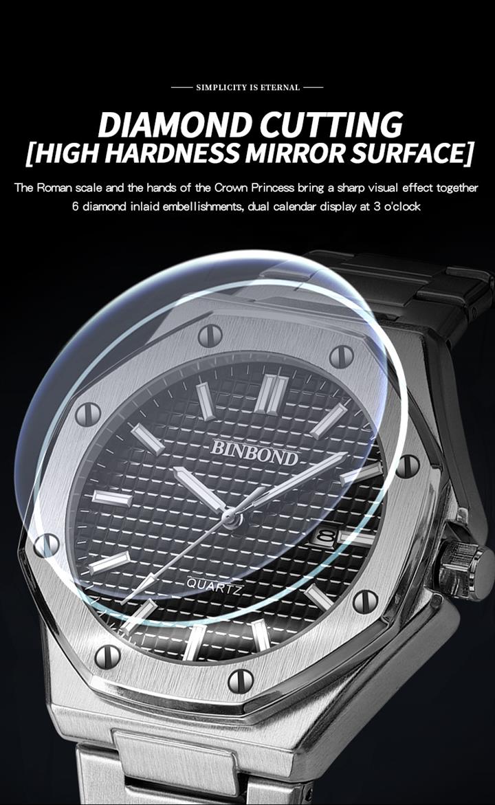 八邊形螺絲裝飾圈石英機芯錶Wat1932