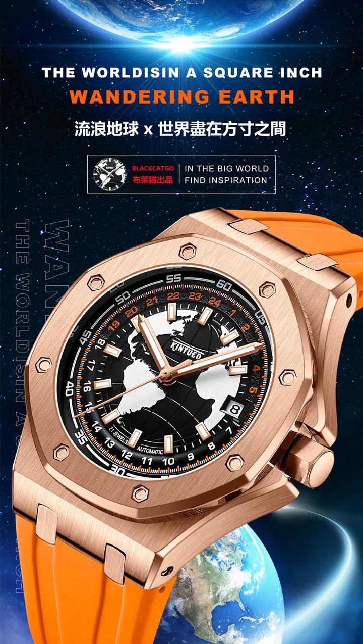 富西尼FORSINING日曆多功能飛輪男士自動機械錶膠帶男錶wat1131