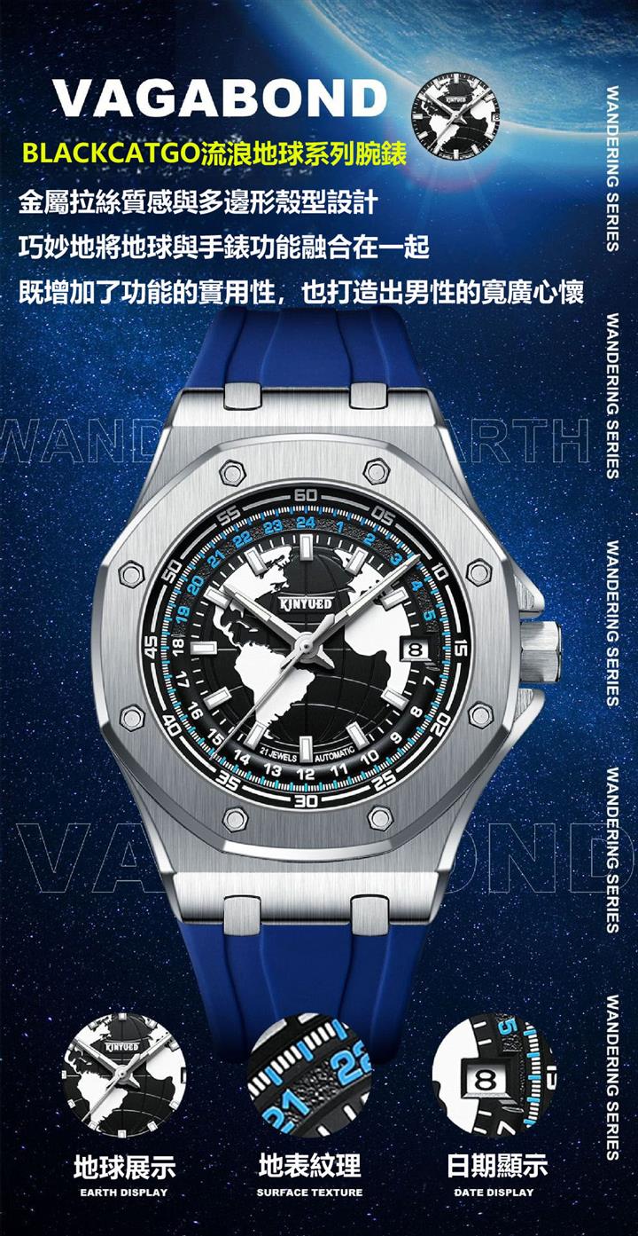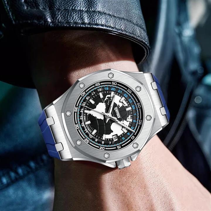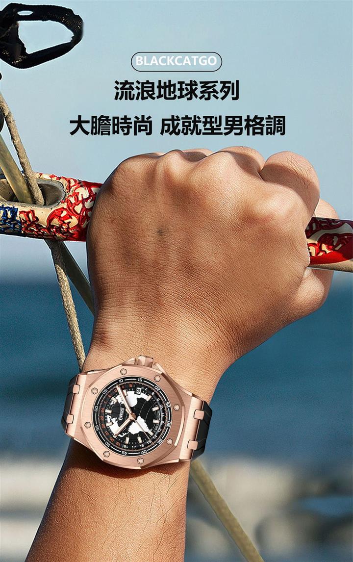 安哥拉寶斯炫彩全鋼錶帶六針石英錶多功能個性運動男士手錶wat1139