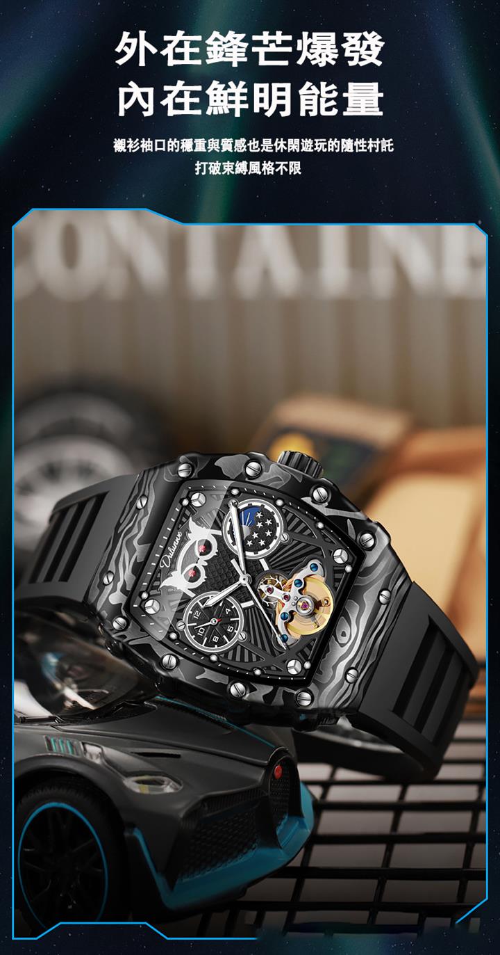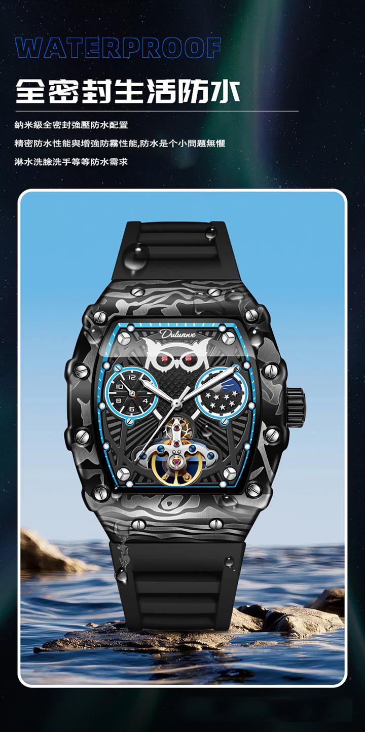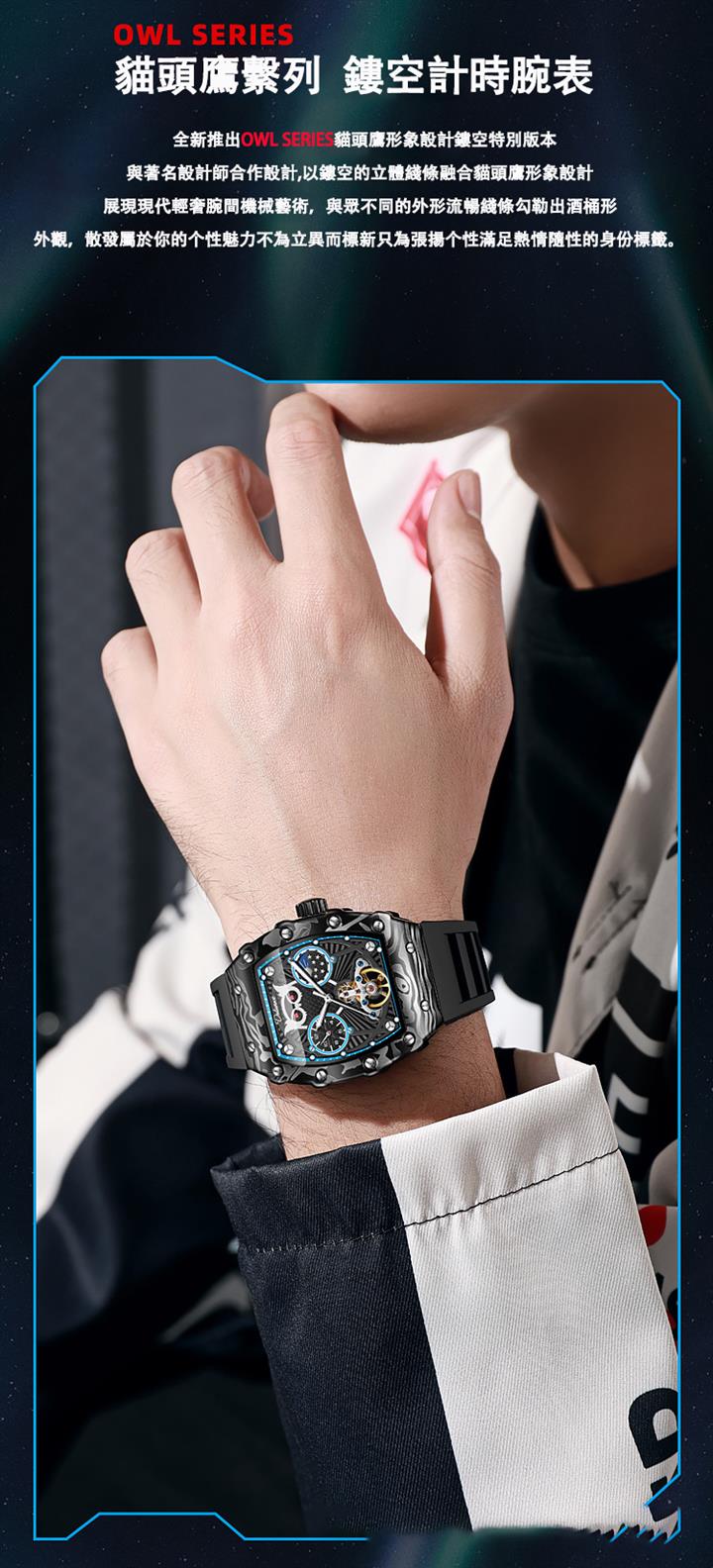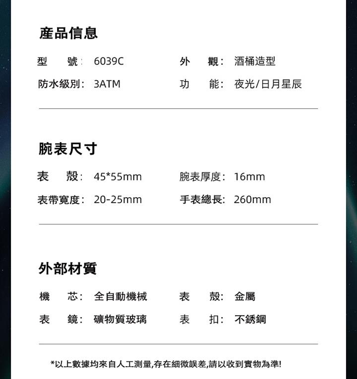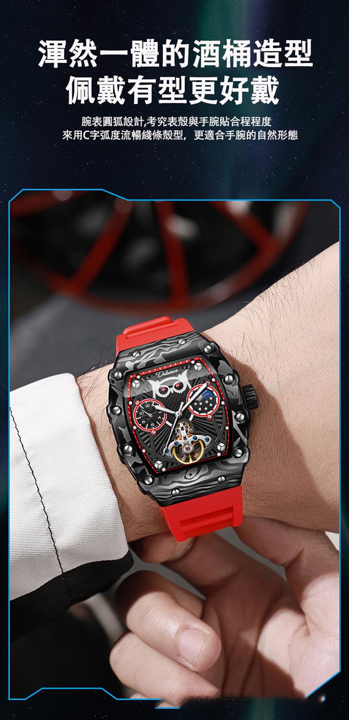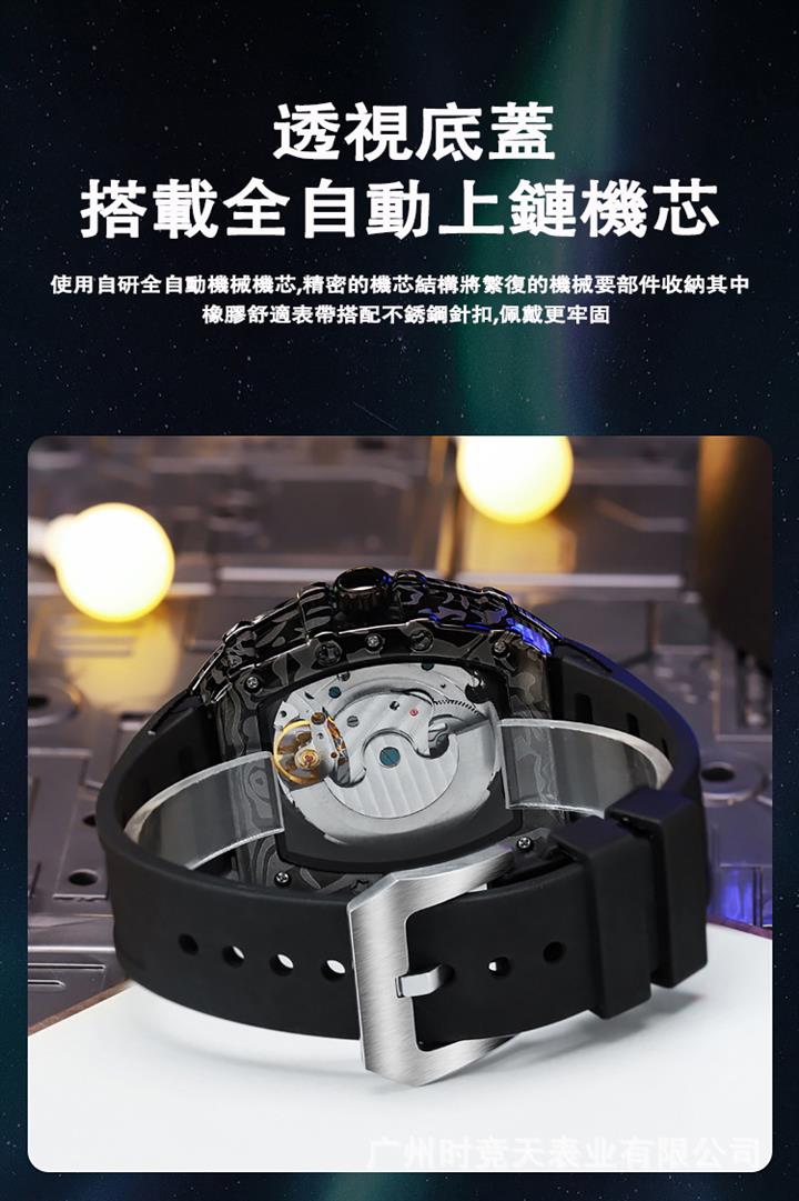 鏤空夜光蟲洞概念酒桶防水機械表wat1950