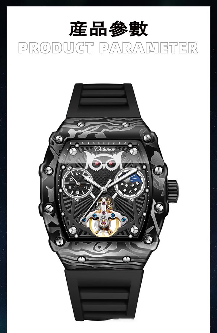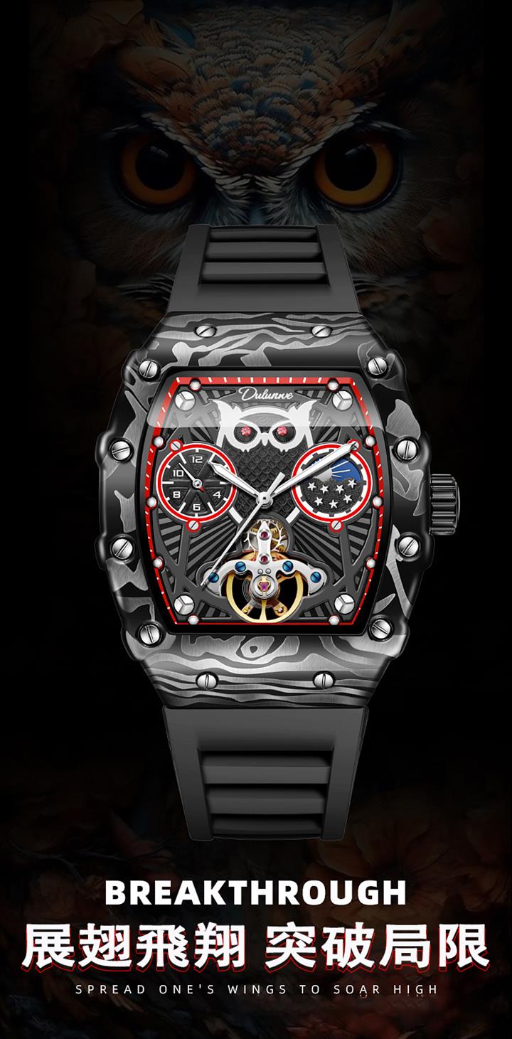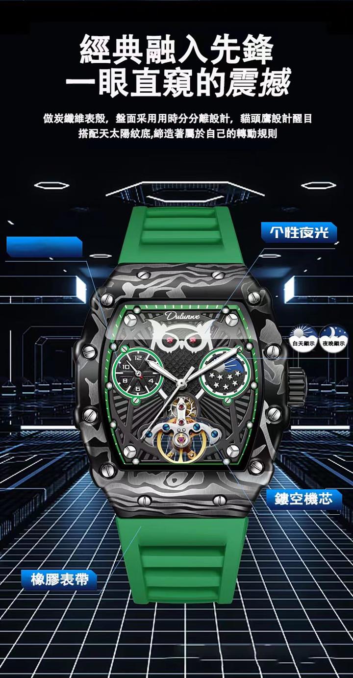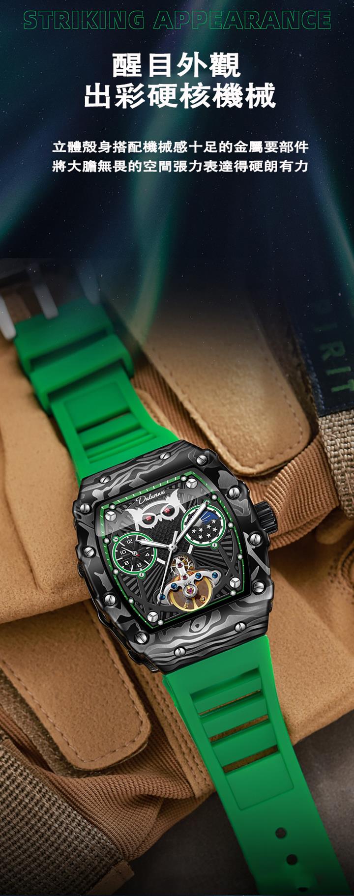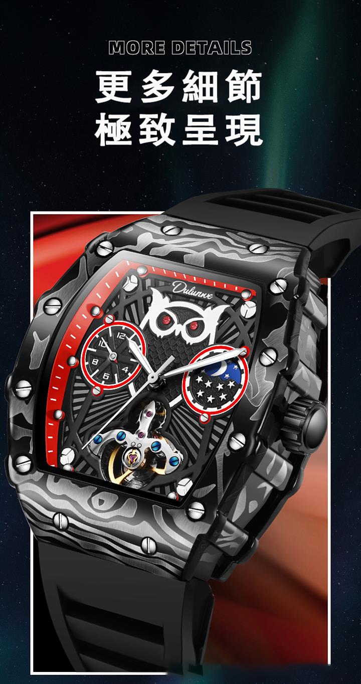 鏤空夜光蟲洞概念酒桶防水機械表wat1950
