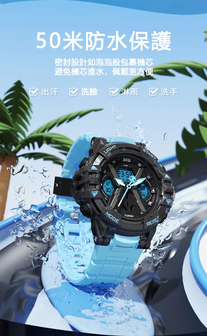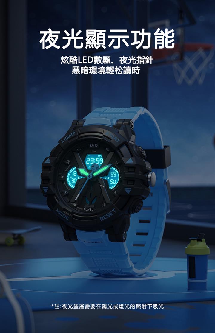 防水電子表LED夜光雙顯運動錶 wat1864