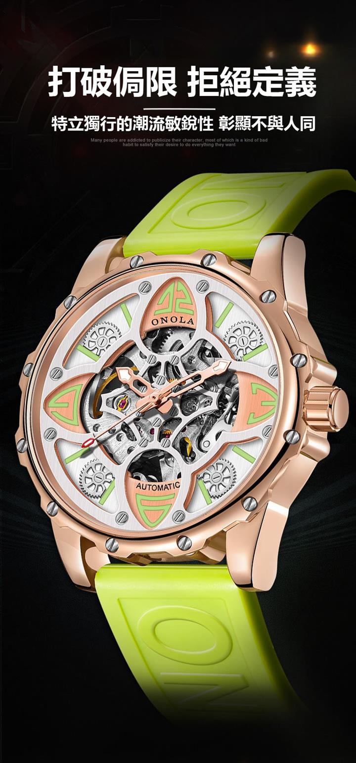 多色硅膠錶帶酒桶型機械運動錶 Wat1928