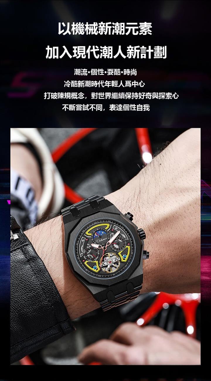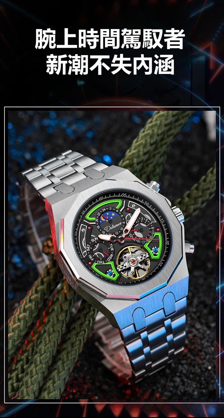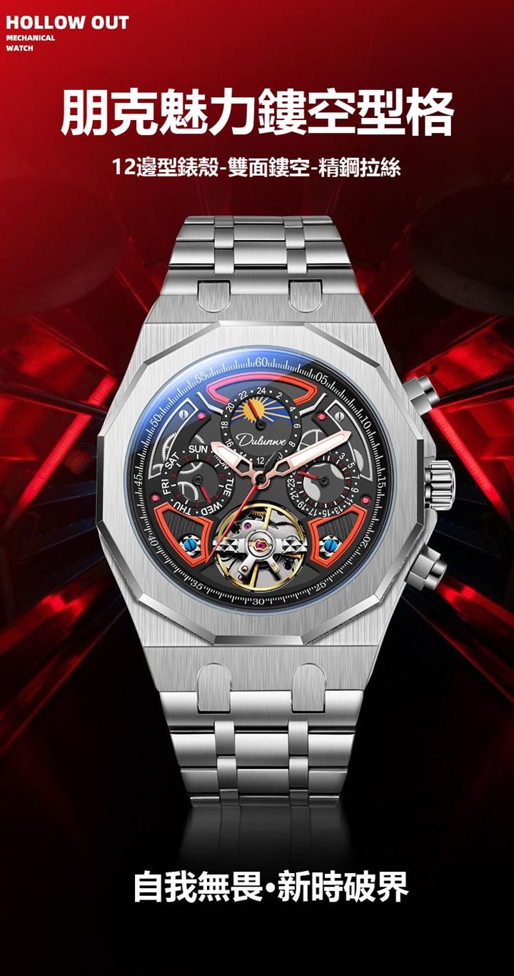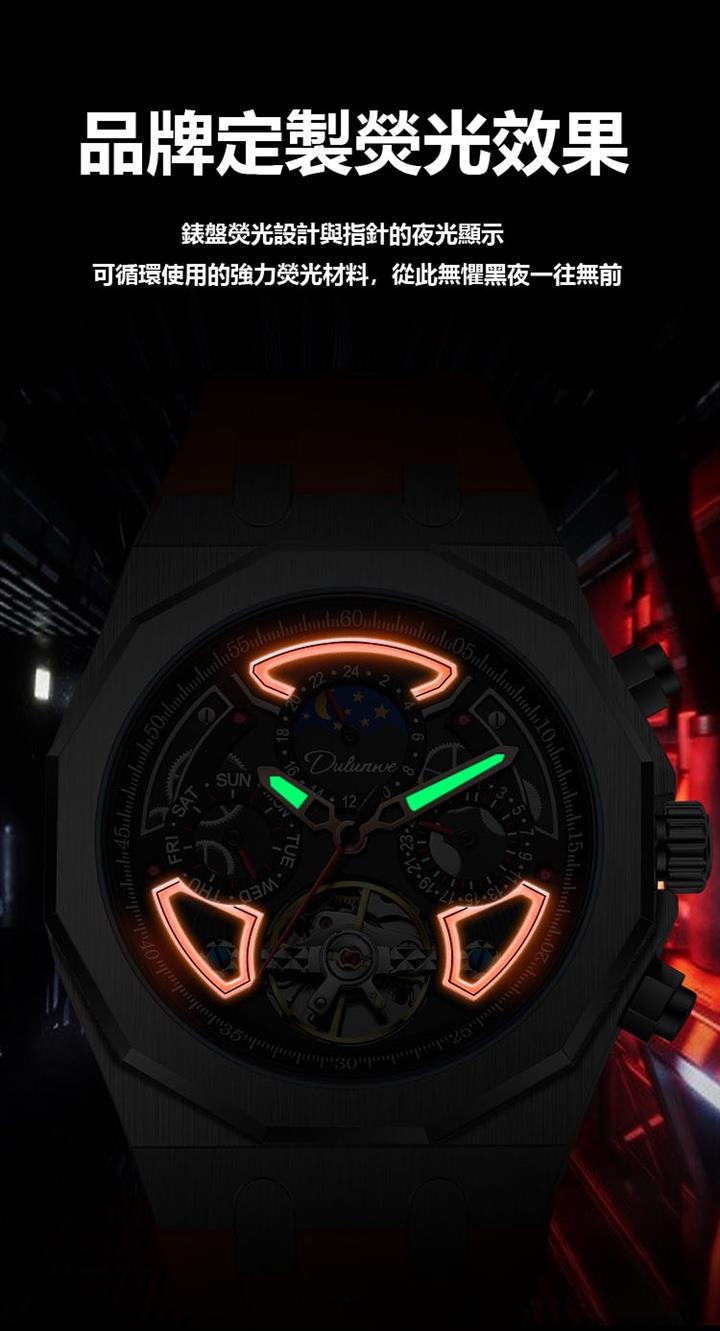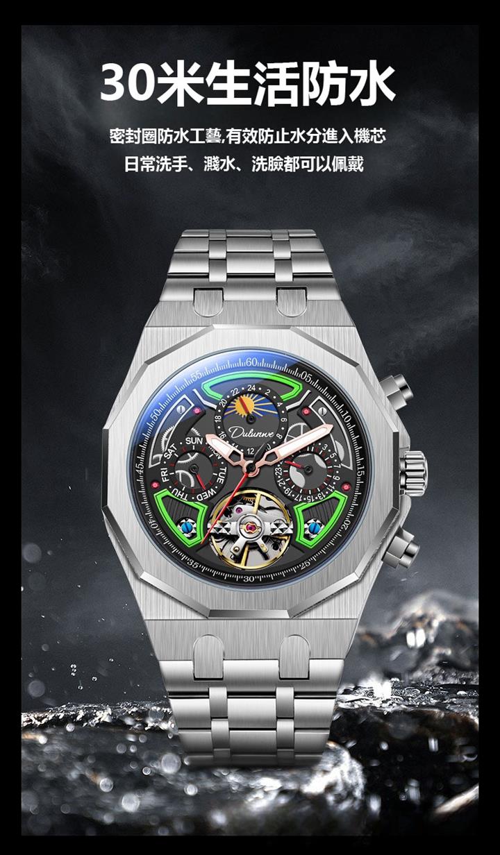 自動機械陀飛輪風格鏤空夜光防水腕錶 wat1845
