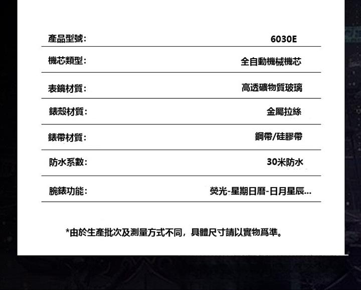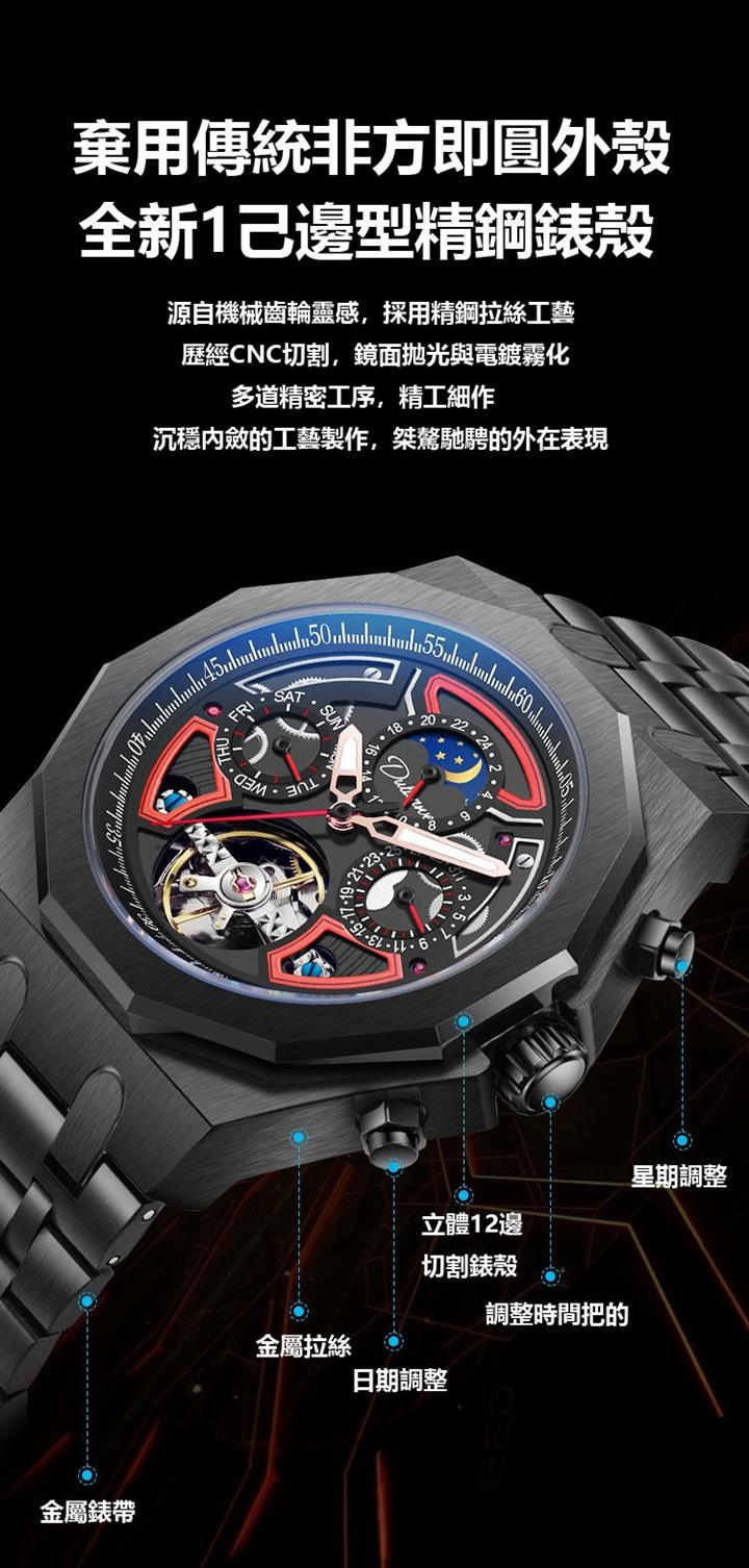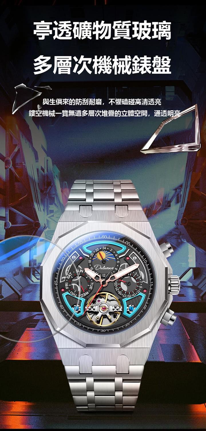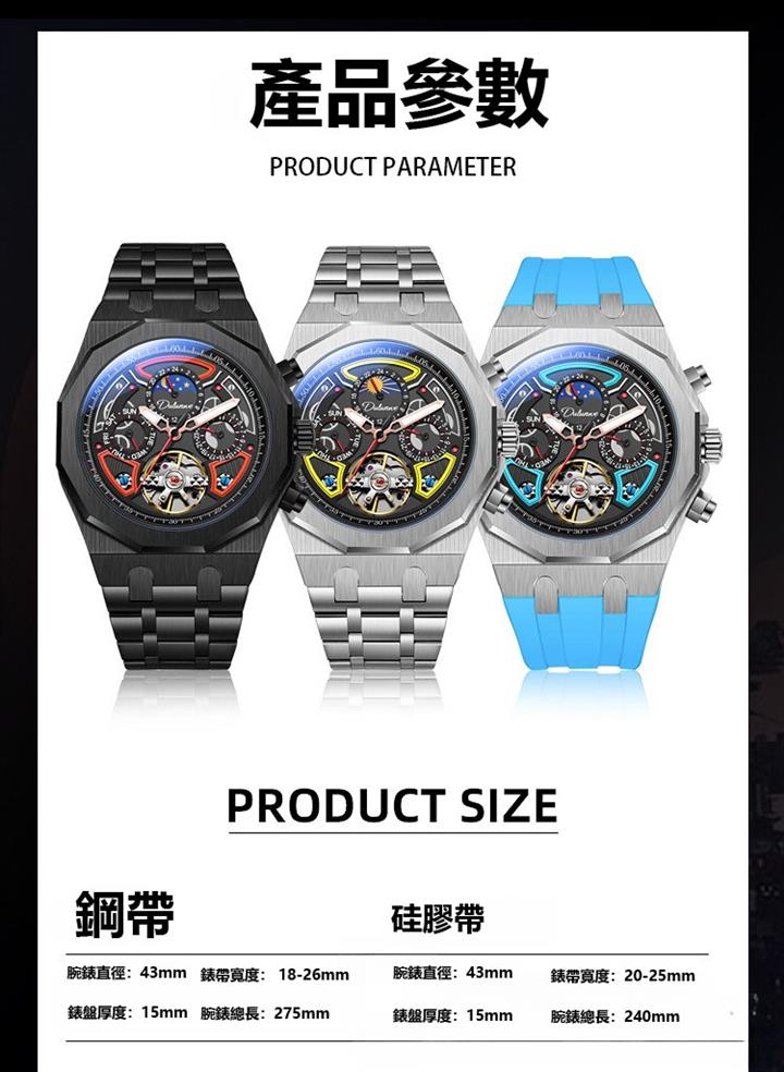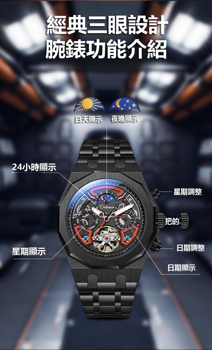 自動機械陀飛輪風格鏤空夜光防水腕錶 wat1845