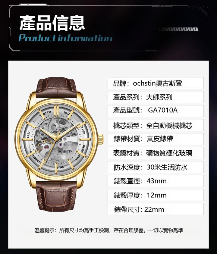全自動機械男表時尚精緻鏤空商務男錶Wat39
