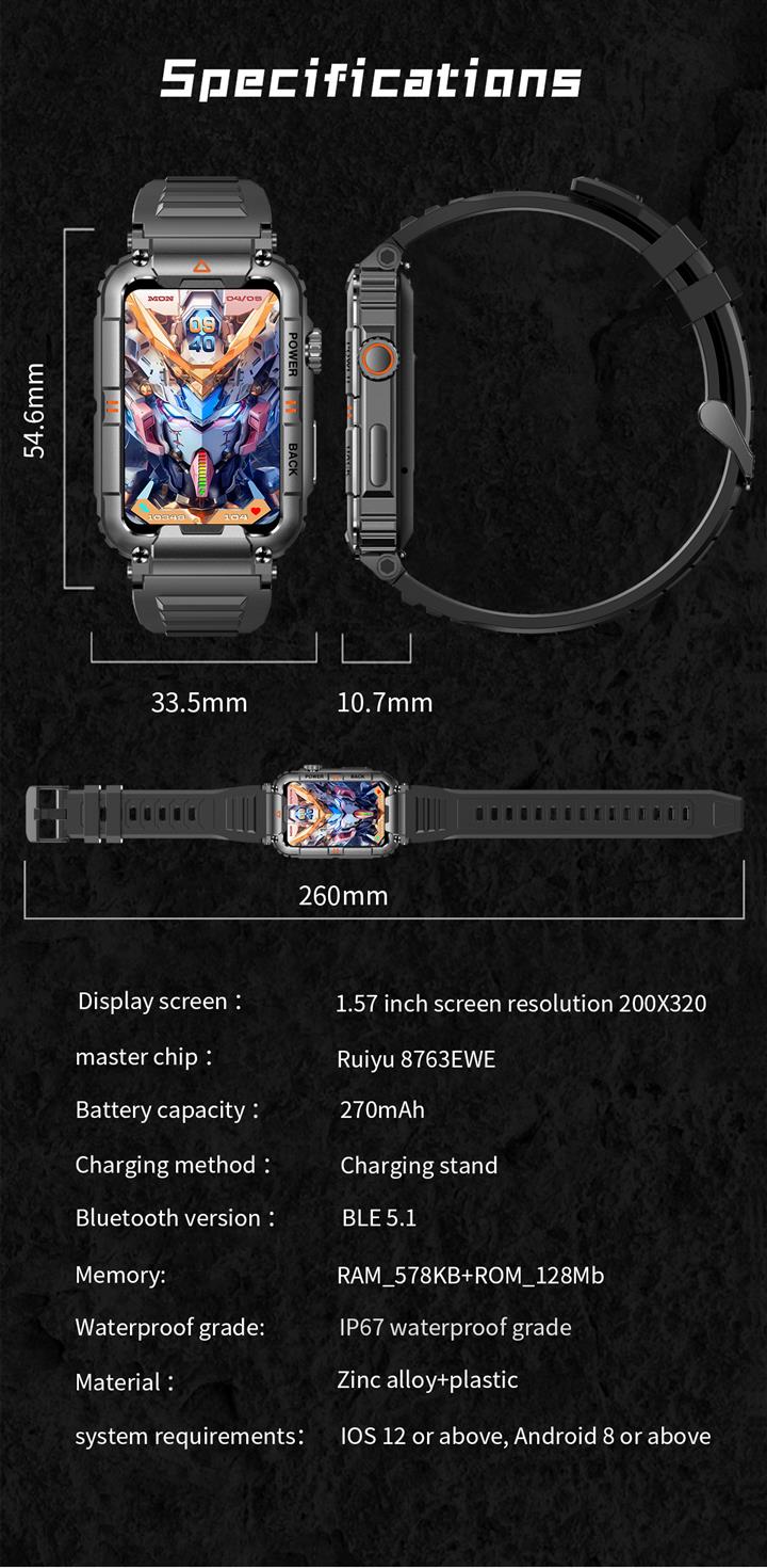智能1.57英寸量血氧血壓心率通話手表Wat2023