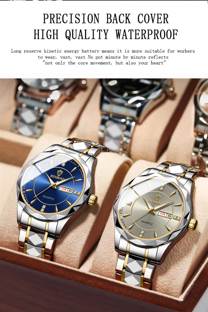 正品精鋼雙日歷防水男女款情侶錶Wat2030