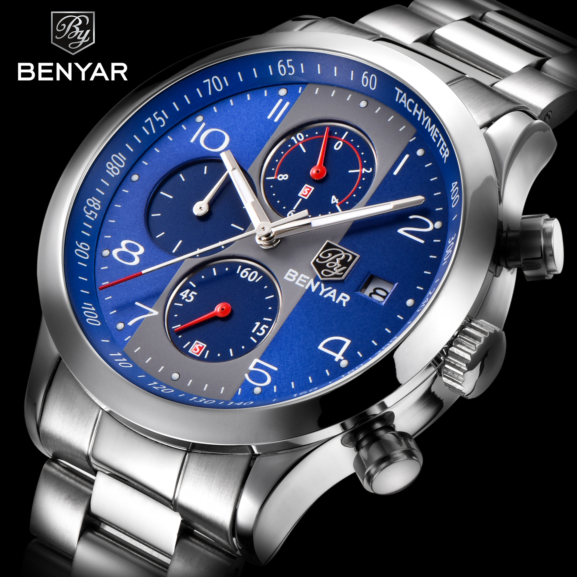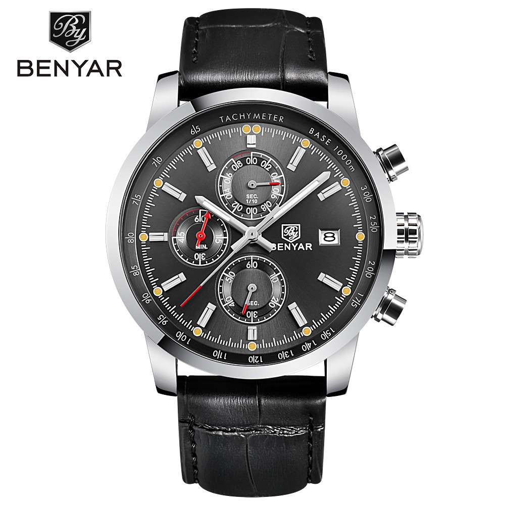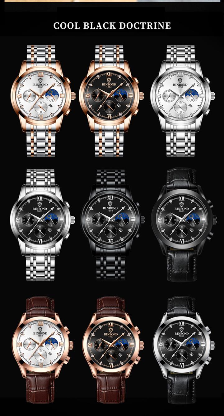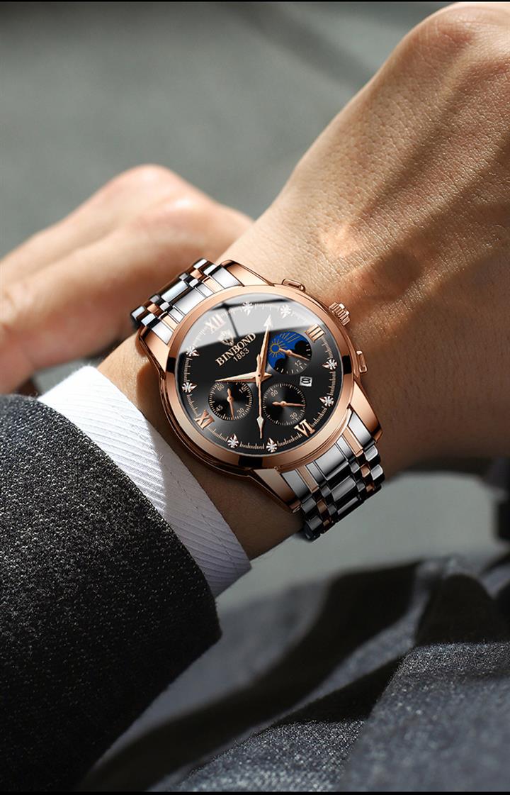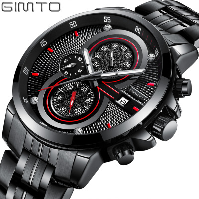 男士三眼錶盤鋼帶手錶 wat353