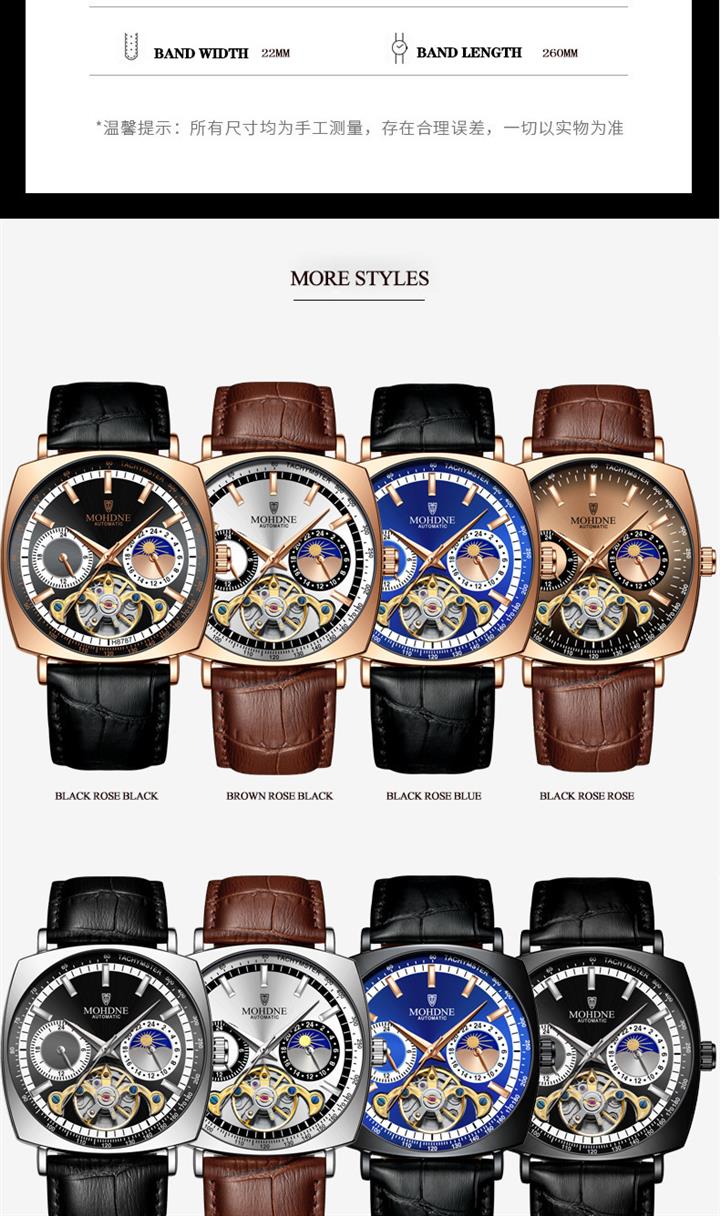 新款方形機械多功能手表Wat2101