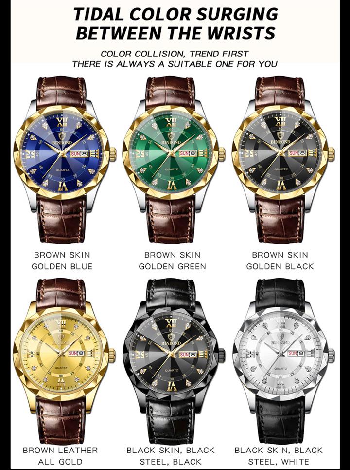 奢華多色雙日曆手錶Wat2269