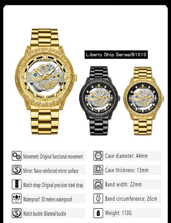 黑武士鏤空機械手錶Wat1976