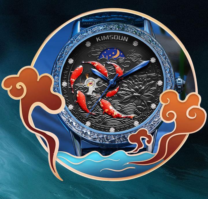 3D浮雕錦鯉鏤空全自動機械表 Wat1859