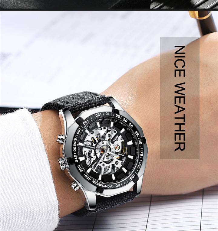 爆款男士時尚鏤空全自動機械表 Wat1895