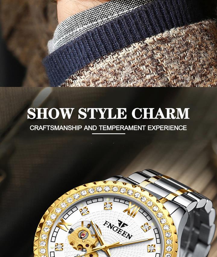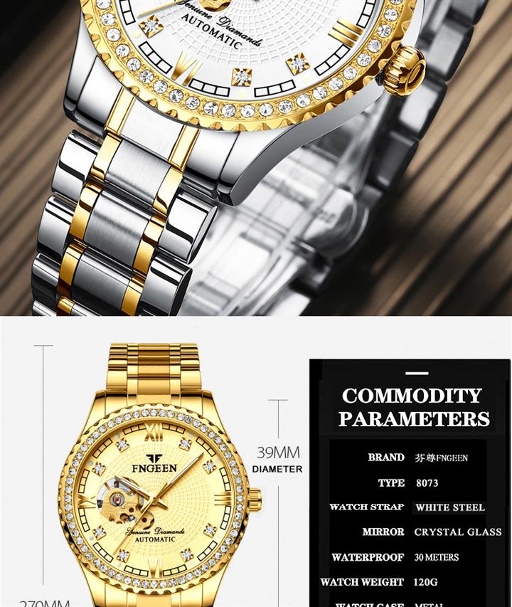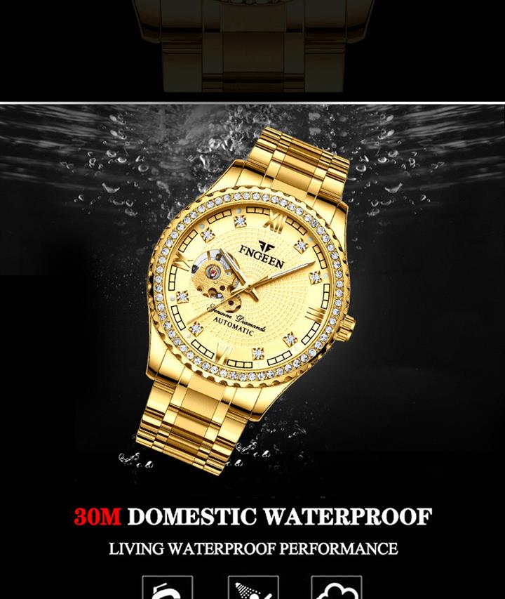 全自動鏤空防水鑲鉆機械男腕表Wat2129