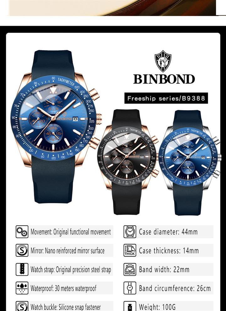 多功能立體表盤男士手表防水Wat2144