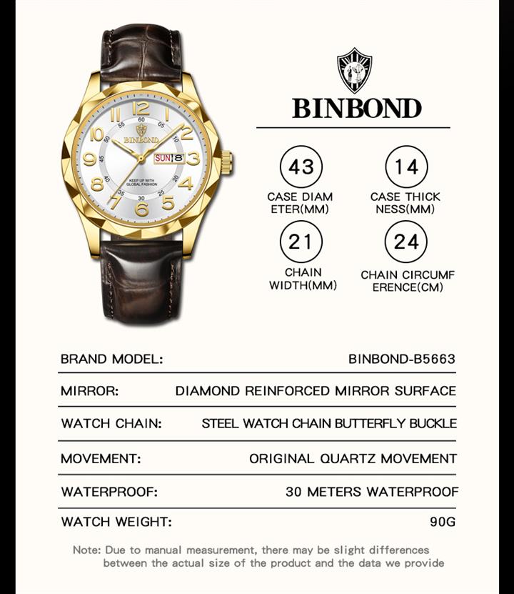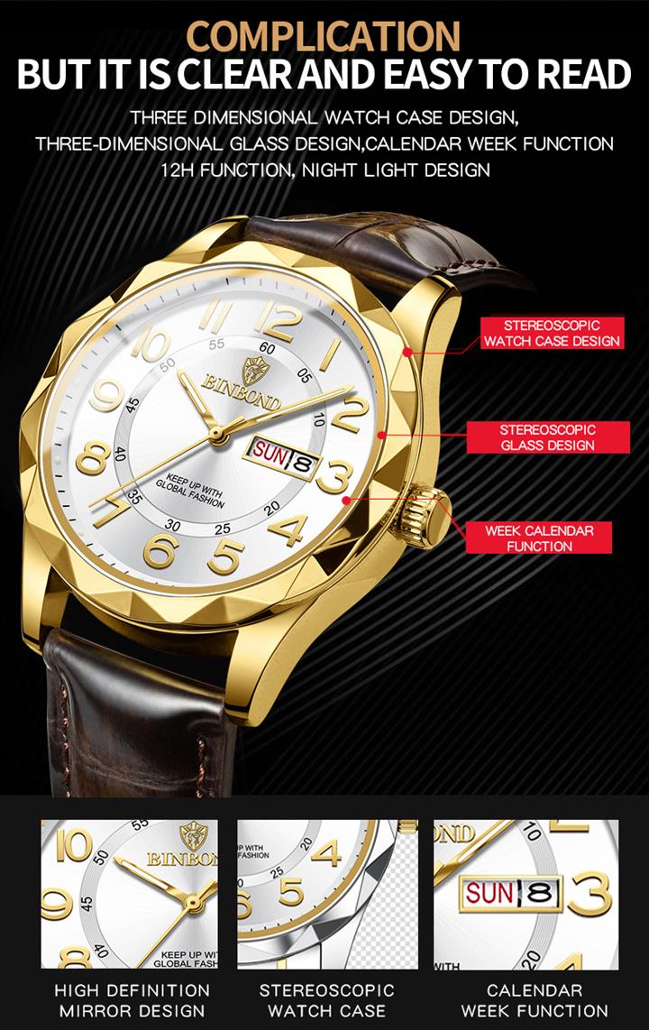 超薄全自動機芯防水日歷手表Wat2165