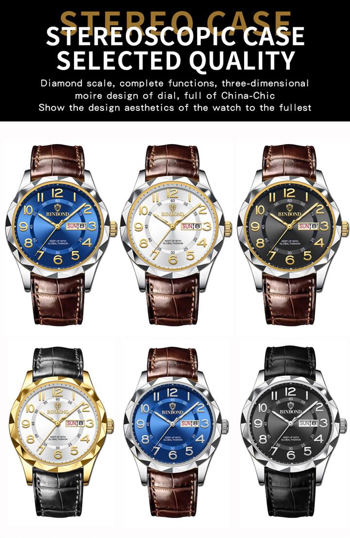 五針三盤男士防水機械錶 wat268
