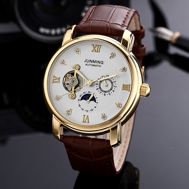 真皮防水機械男錶 wat274