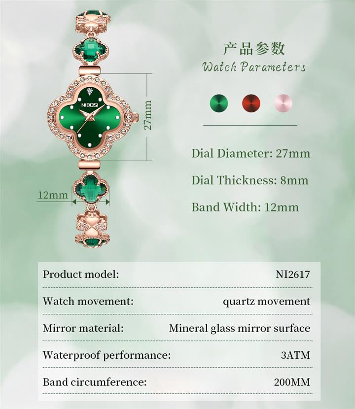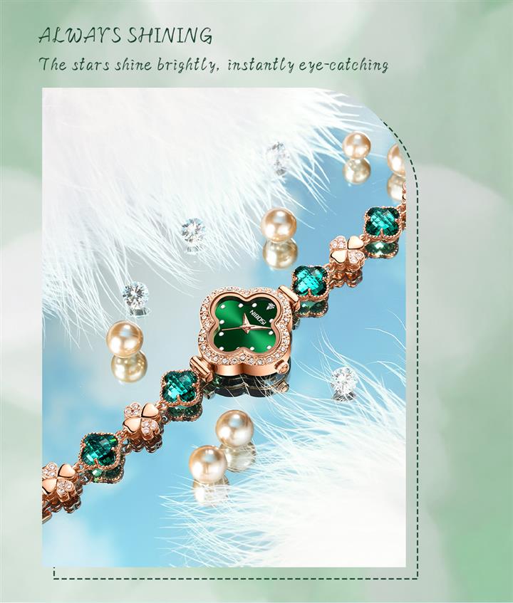 四葉草小綠表祖母綠石盤面女表Wat2198
