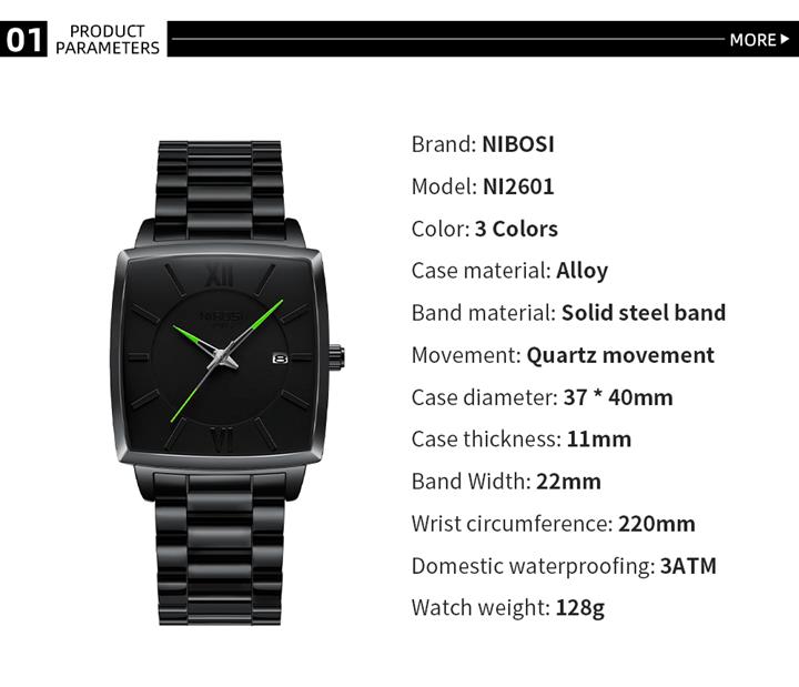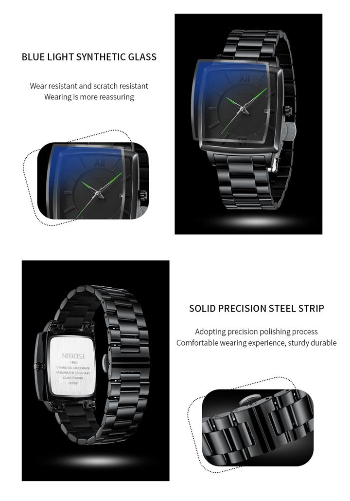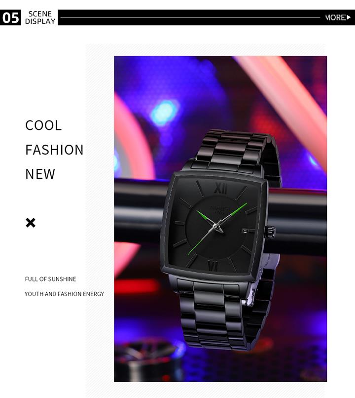 男士實心鋼帶夜光防水錶Wat2209