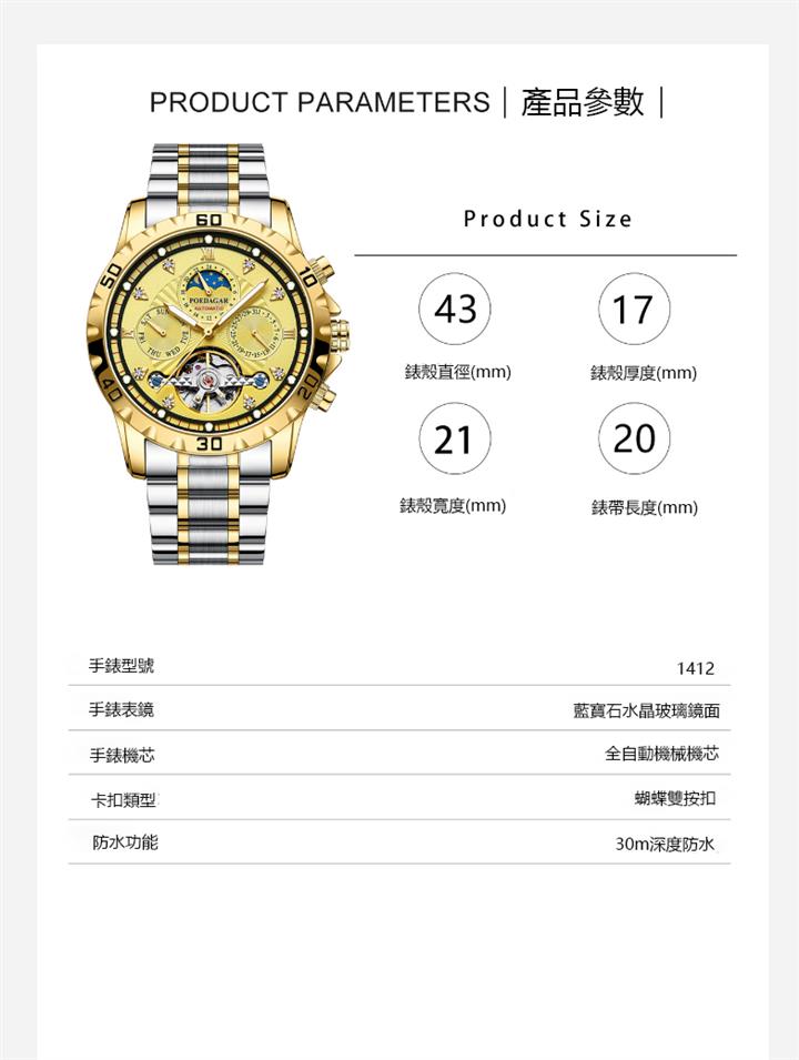 日曆星期陀飛輪機械錶Wat2251