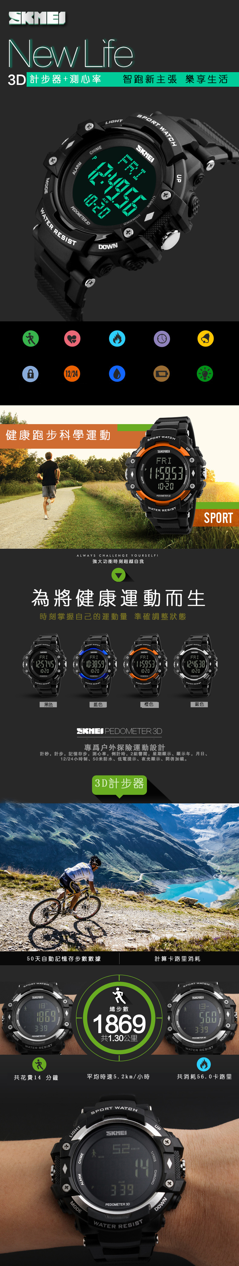大屏運動藍牙計步測心率健康監測智能錶 Wat1858