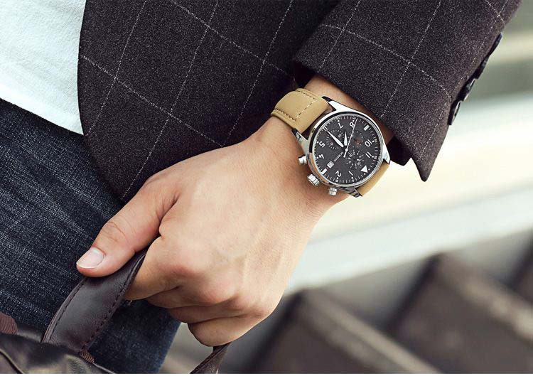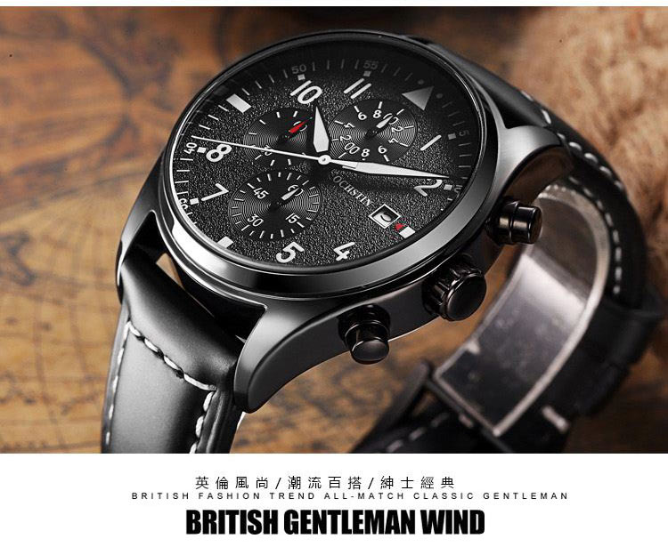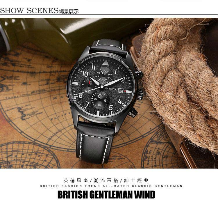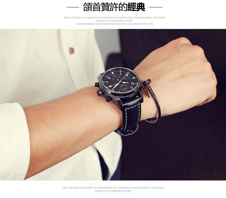 真皮高檔男士手錶夜光商務休閒男錶Wat03