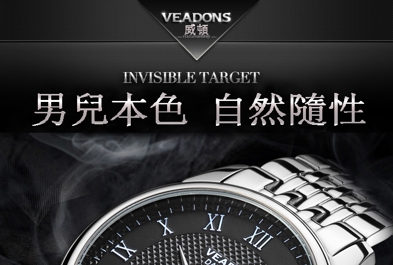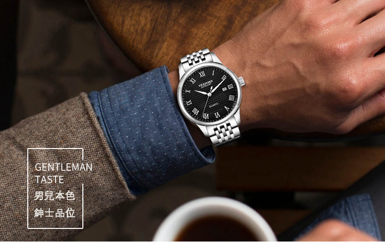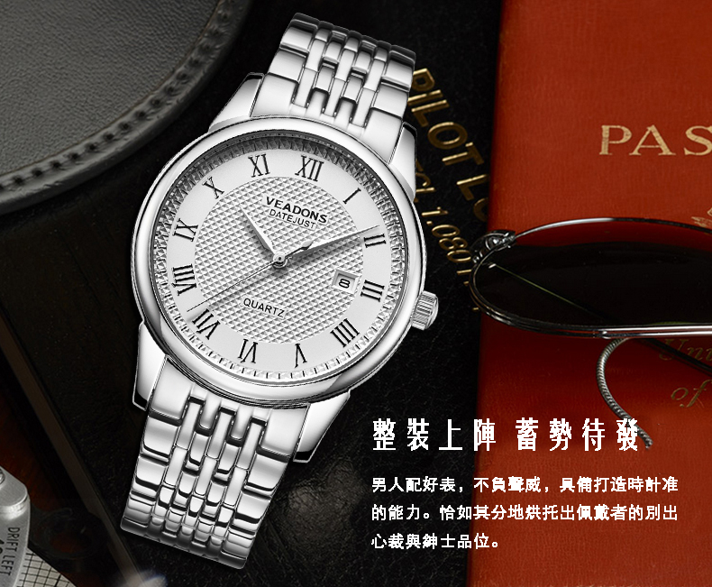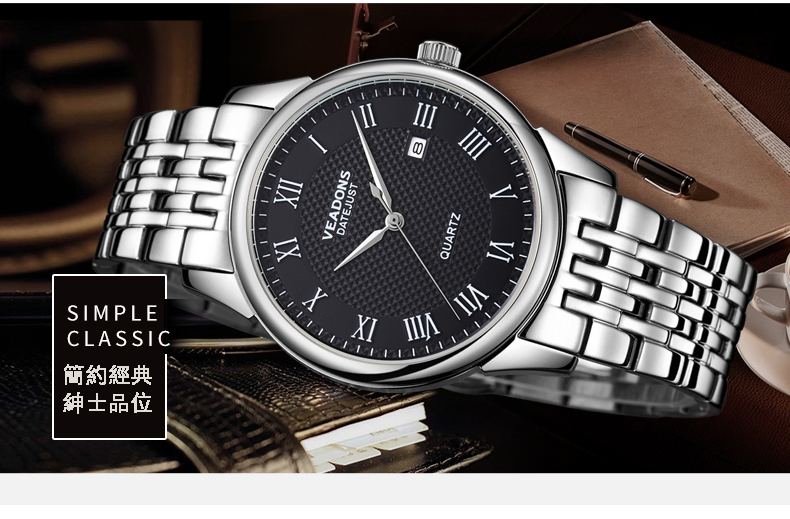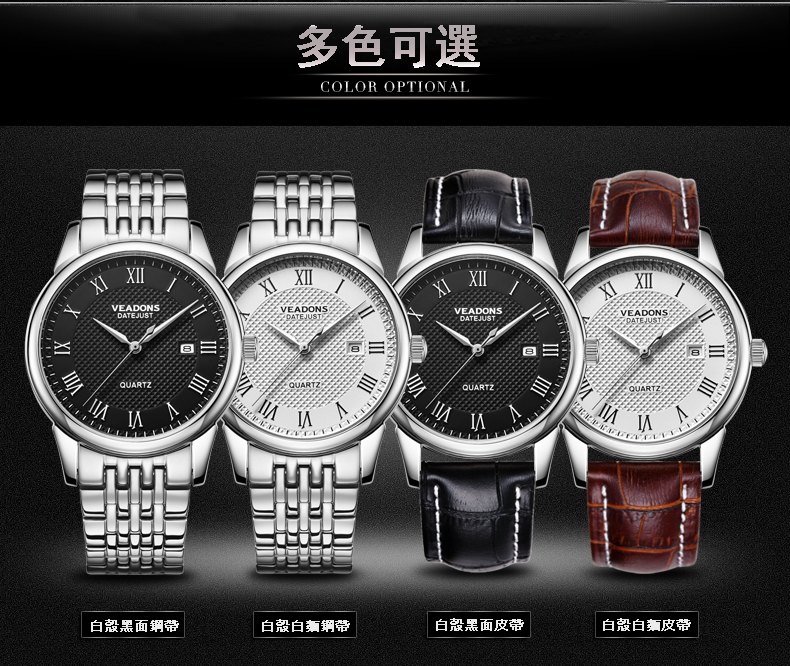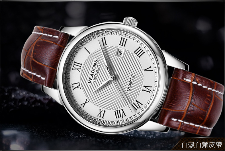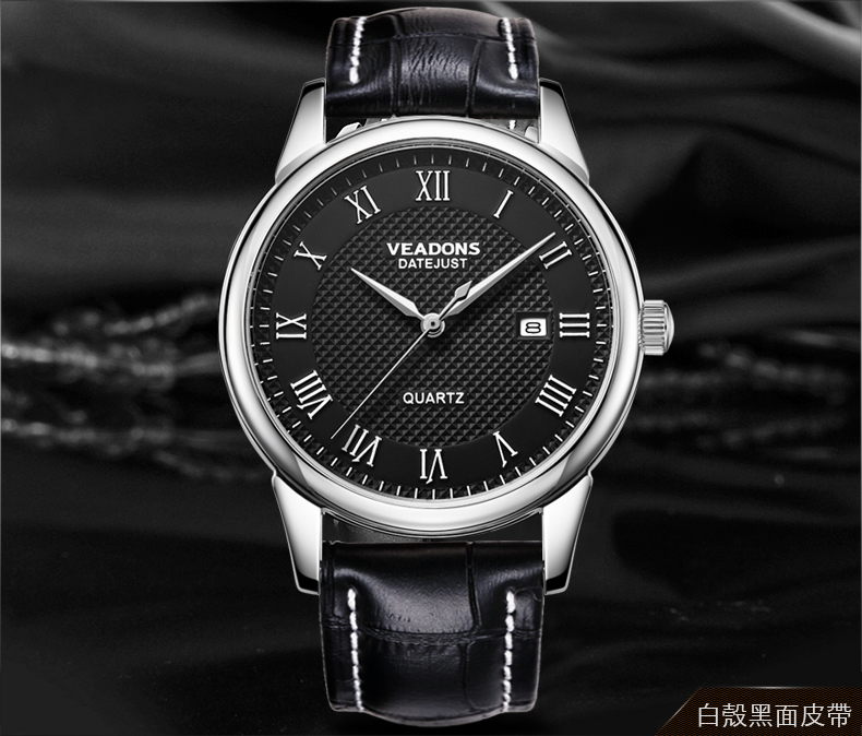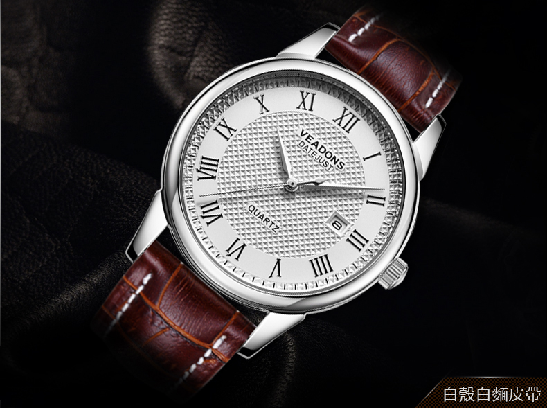 威頓VEADONS男表 時尚商務日歷防水皮帶男表Wat22