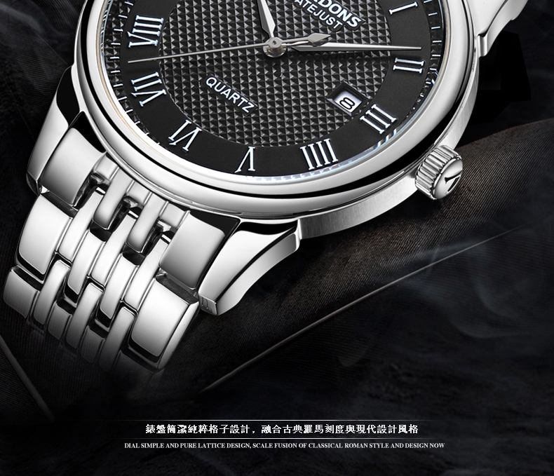 男士精鋼網帶石英男錶簡約日曆腕錶wat115