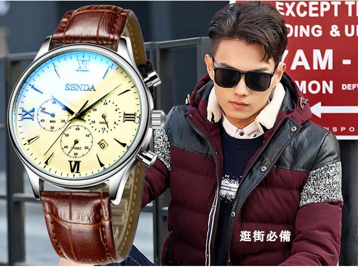 美格尔MEGIR多功能男士運動防水真皮手錶wat138