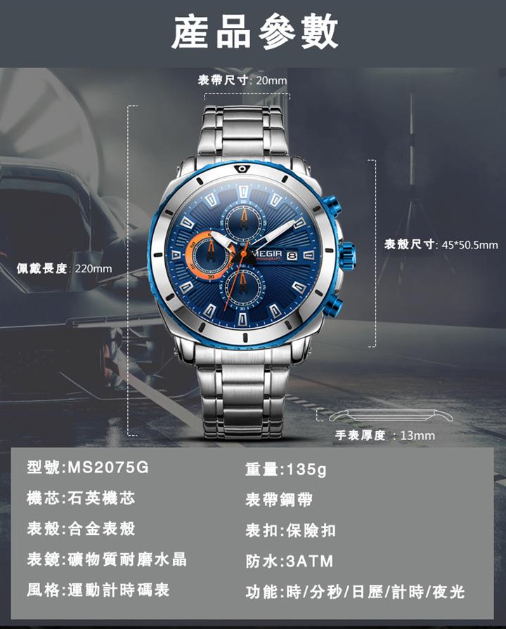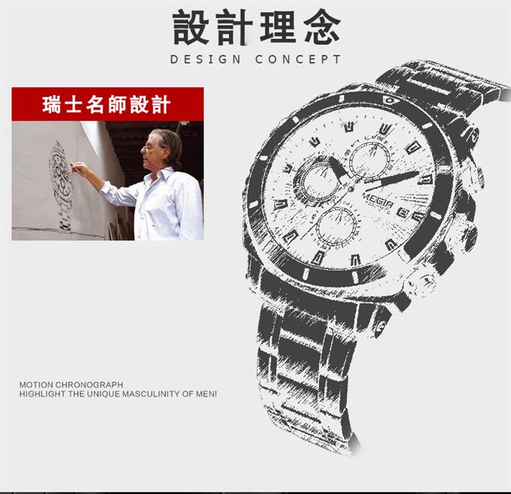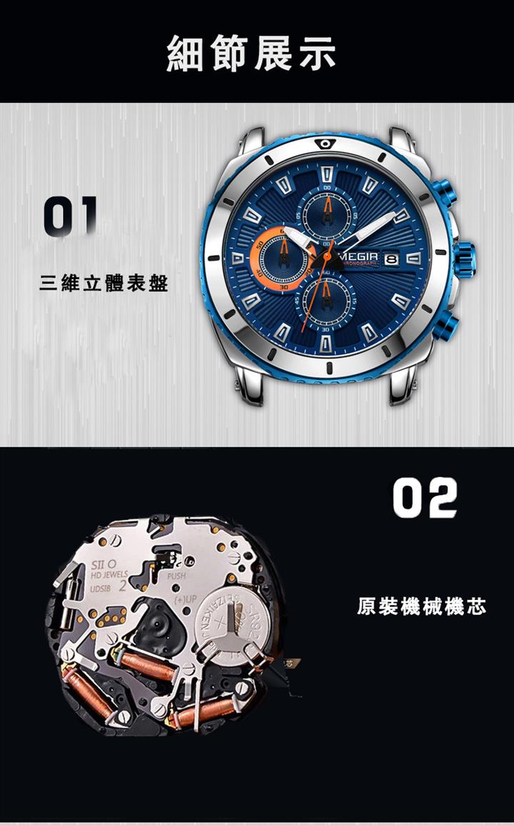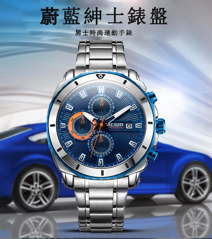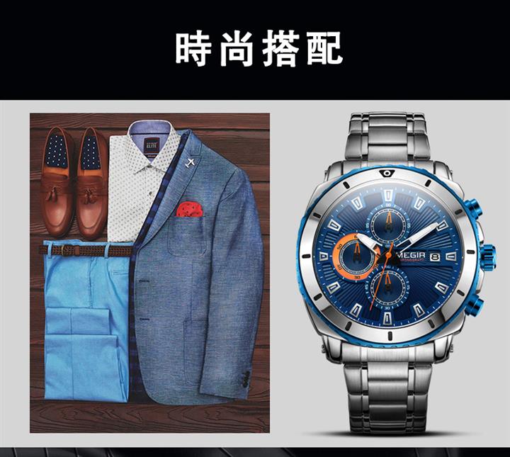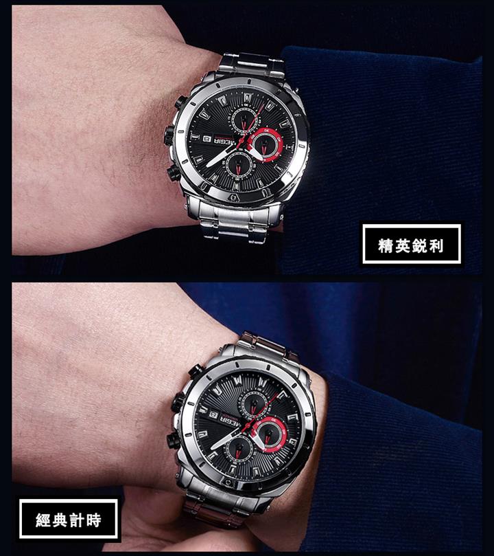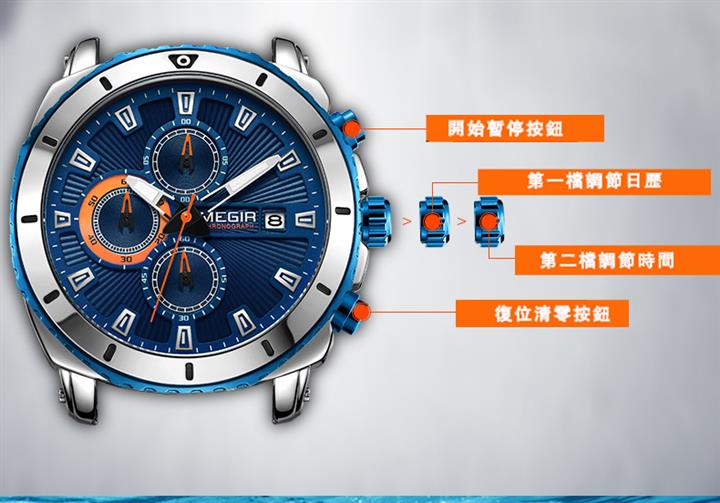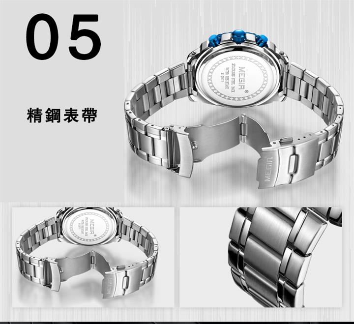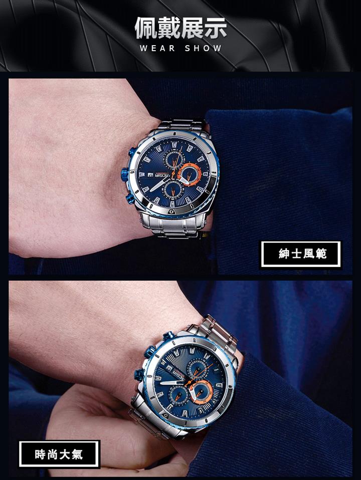 防水夜光雙日歷鑲鉆蝴蝶扣男表Wat2071