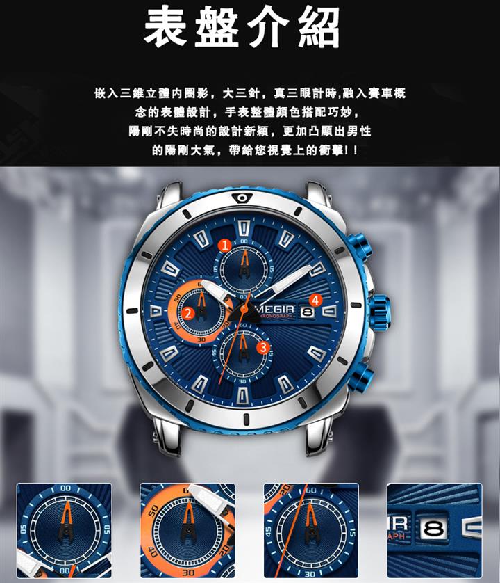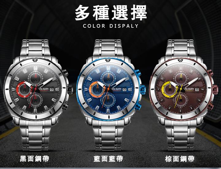 潮流夜光陀飛輪三眼六針手表Wat2066
