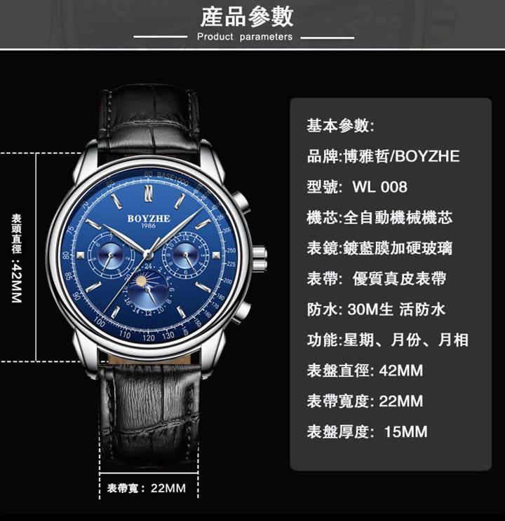 全自動鏤空陀飛輪防水機械腕表Wat2154